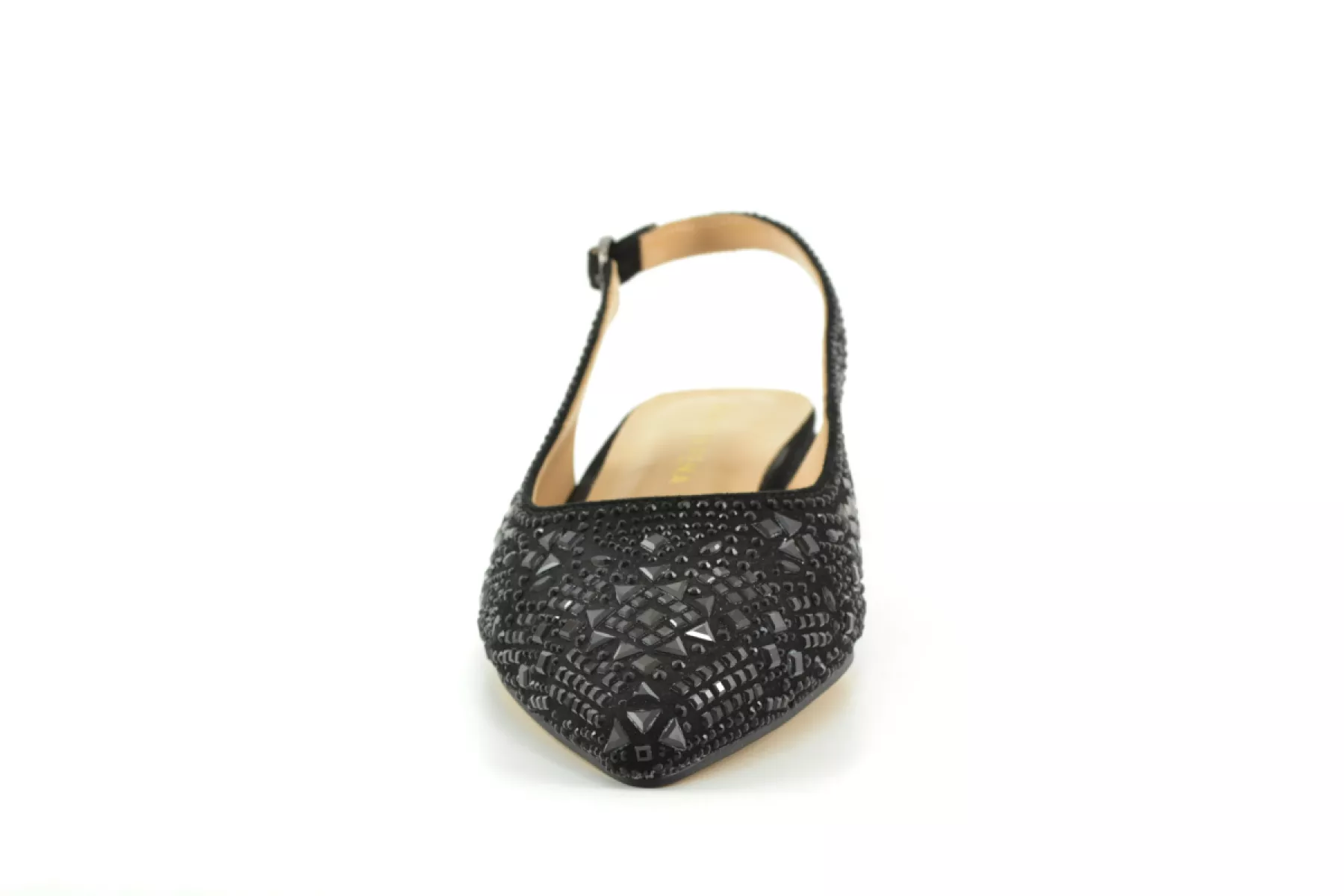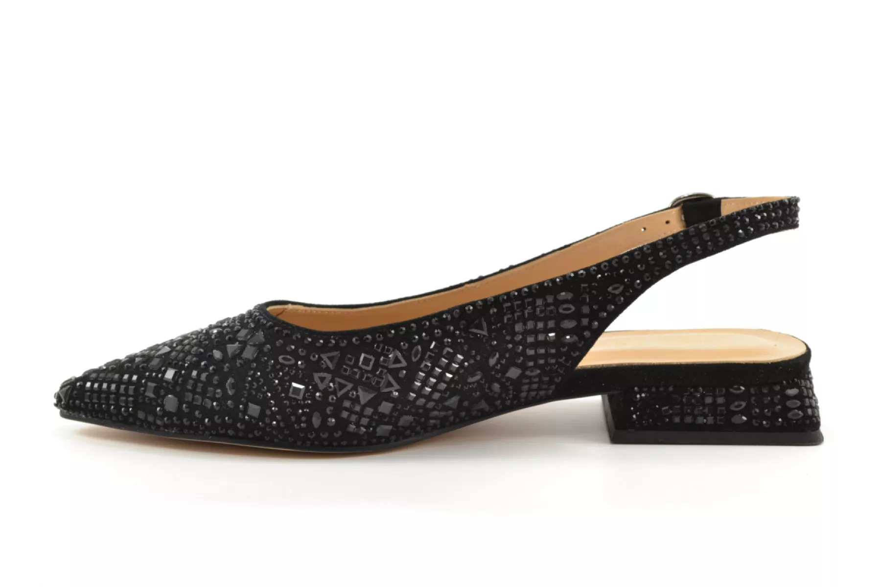 details: deze mooie vrouwelijke ballerina met slingback van het Spaanse merk Alma en Pena is bezet met zwarte strass steentjes
