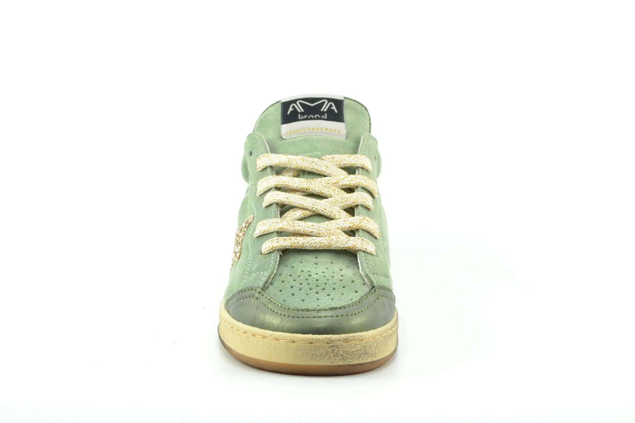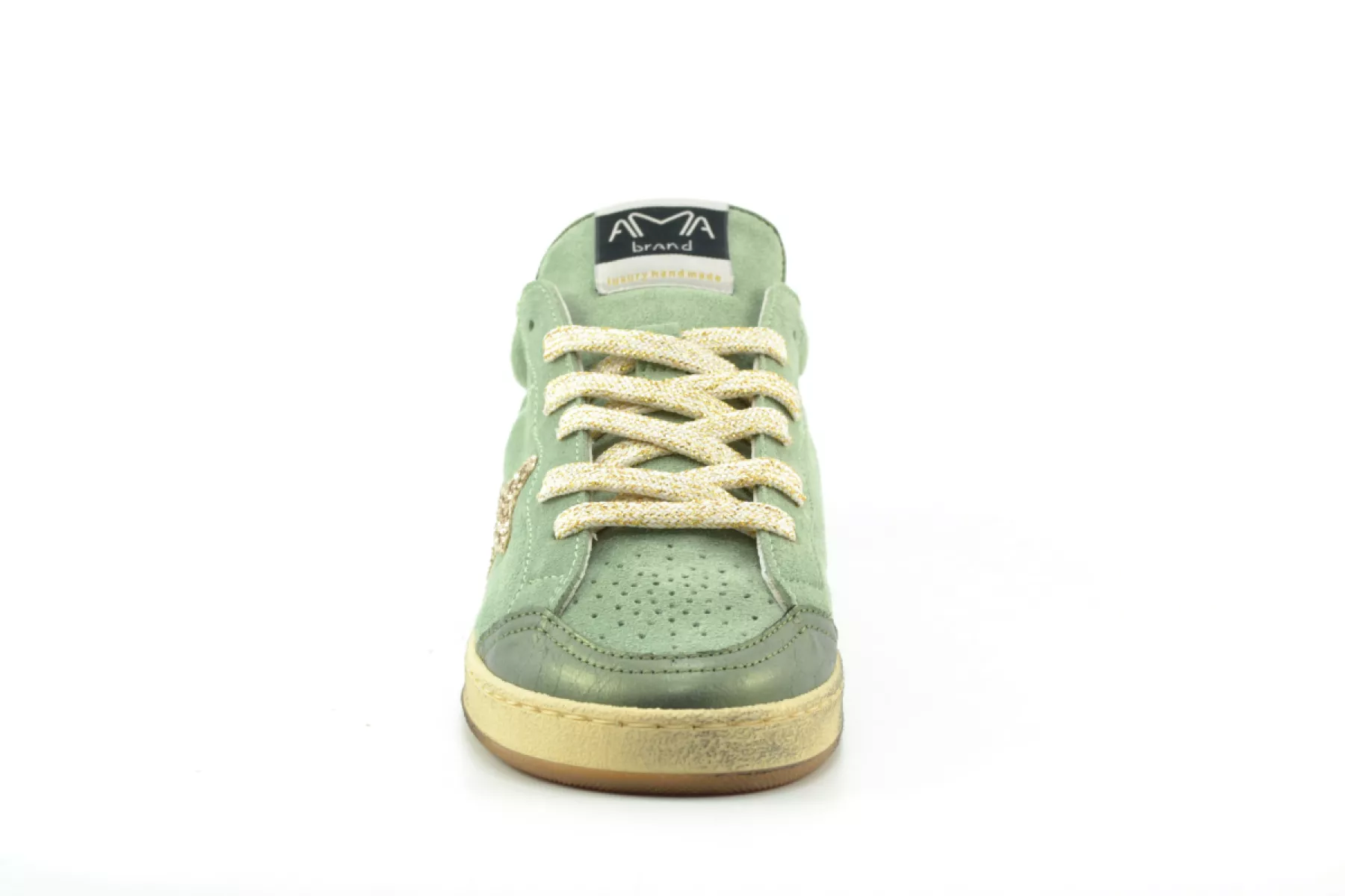 Handmade Italian sneakers with a different point of view. Dat is AMA! Luxe damessneakers met glitter details. De branding op de tong en zij- en achterkant geven deze sneakers net dat beetje extra.