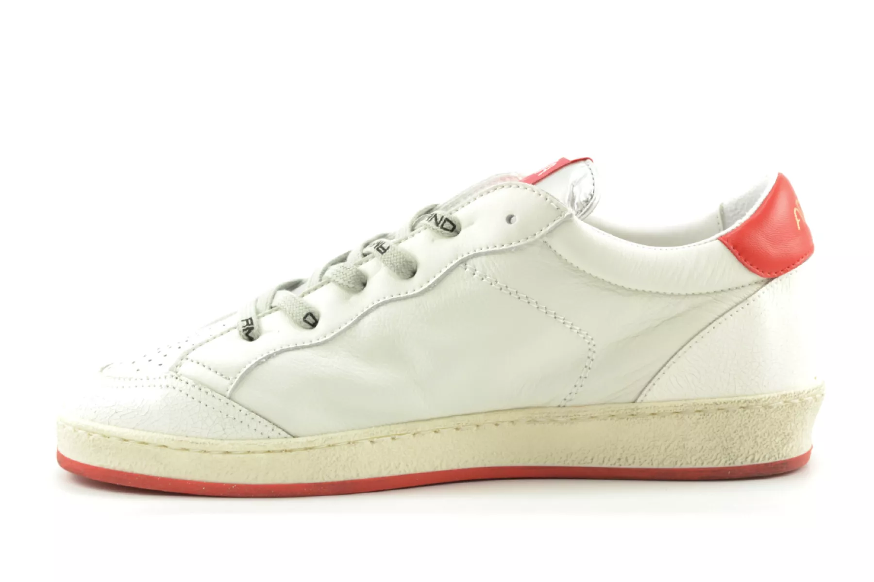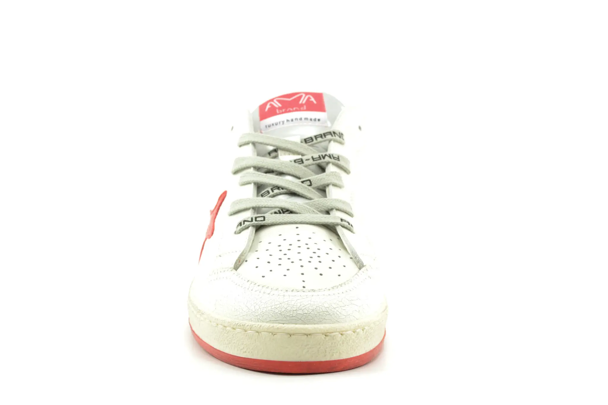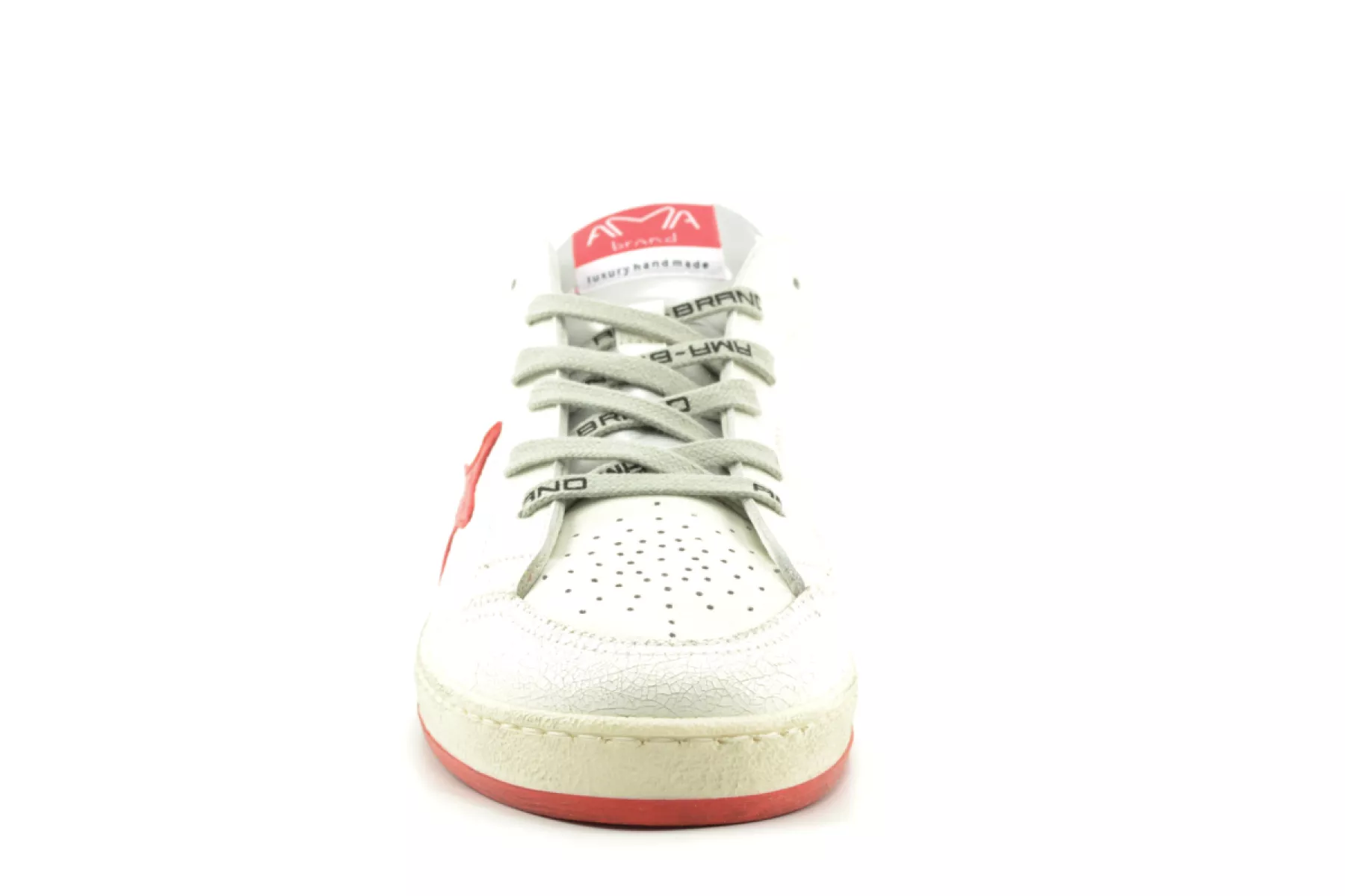Handmade Italian sneakers with a different point of view. Dat is AMA! Deze luxe herensneakers in off white leer hebben rood leren details. Het bekende logo van AMA vindt je op de tong, zij- en achterkant.