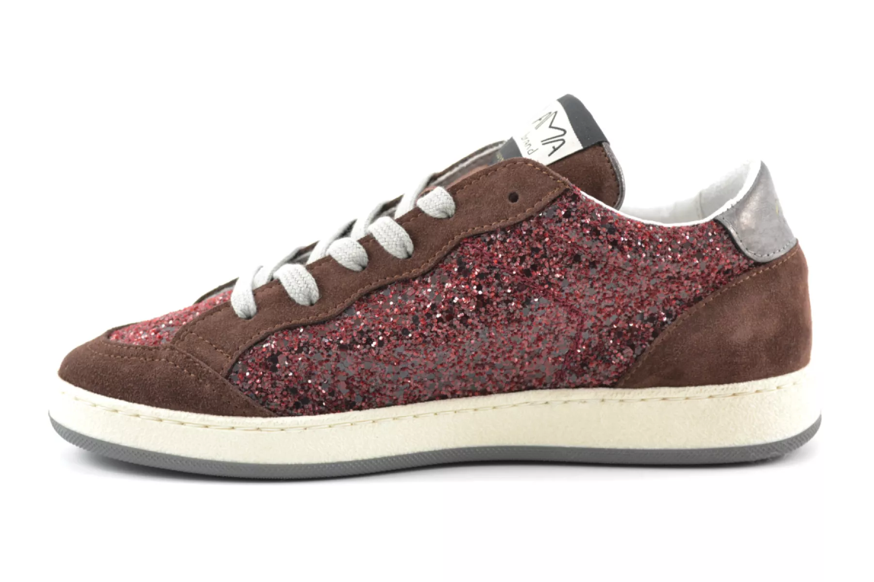 Handmade Italian sneakers with a different point of view. Dat is AMA! Luxe damessneakers met glitter details. De branding op de tong en zij- en achterkant geven deze sneakers net dat beetje extra.