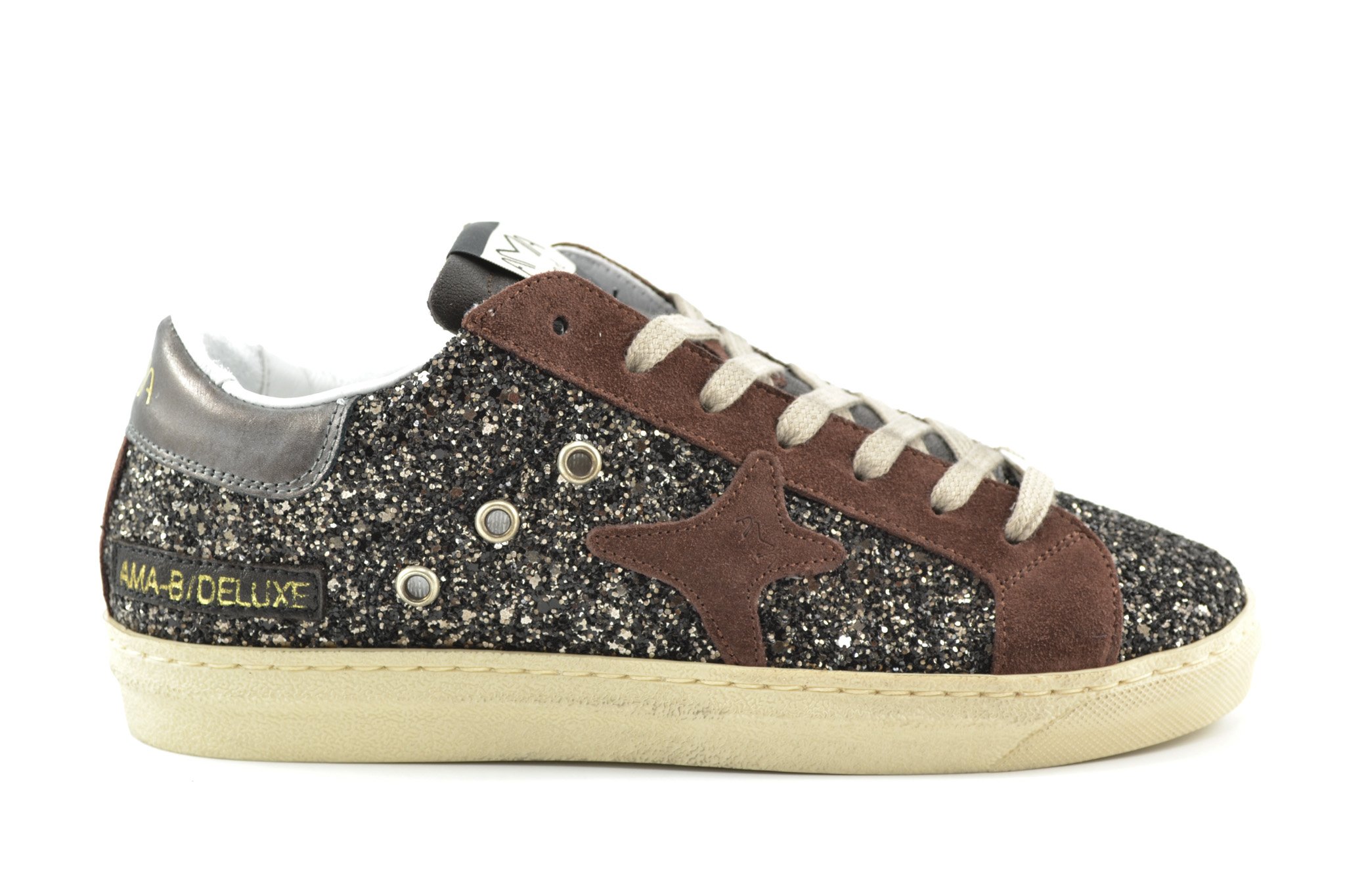 Handmade Italian sneakers with a different point of view. Dat is AMA! Luxe damessneakers met glitter details. De branding op de tong en zij- en achterkant geven deze sneakers net dat beetje extra.