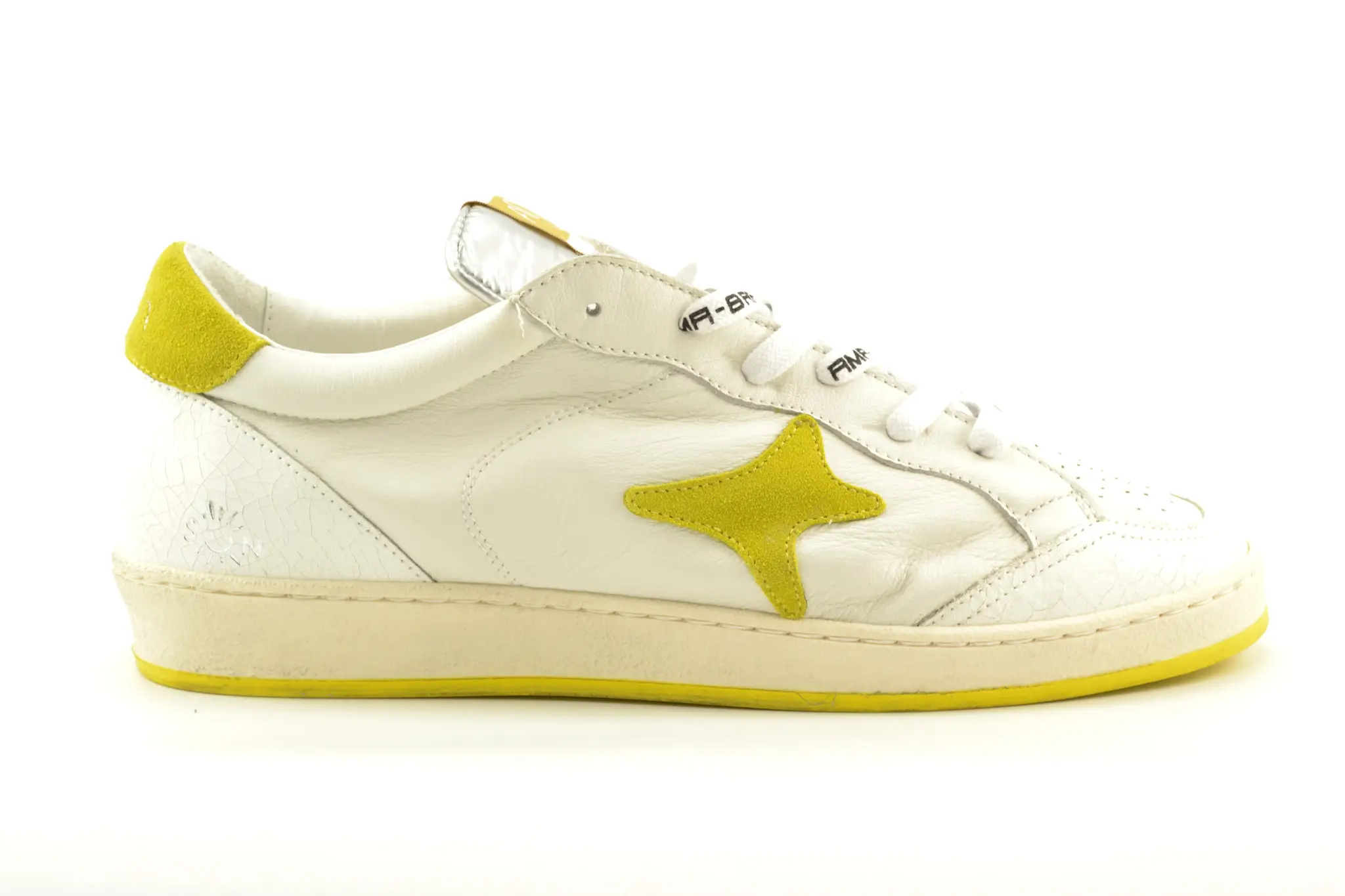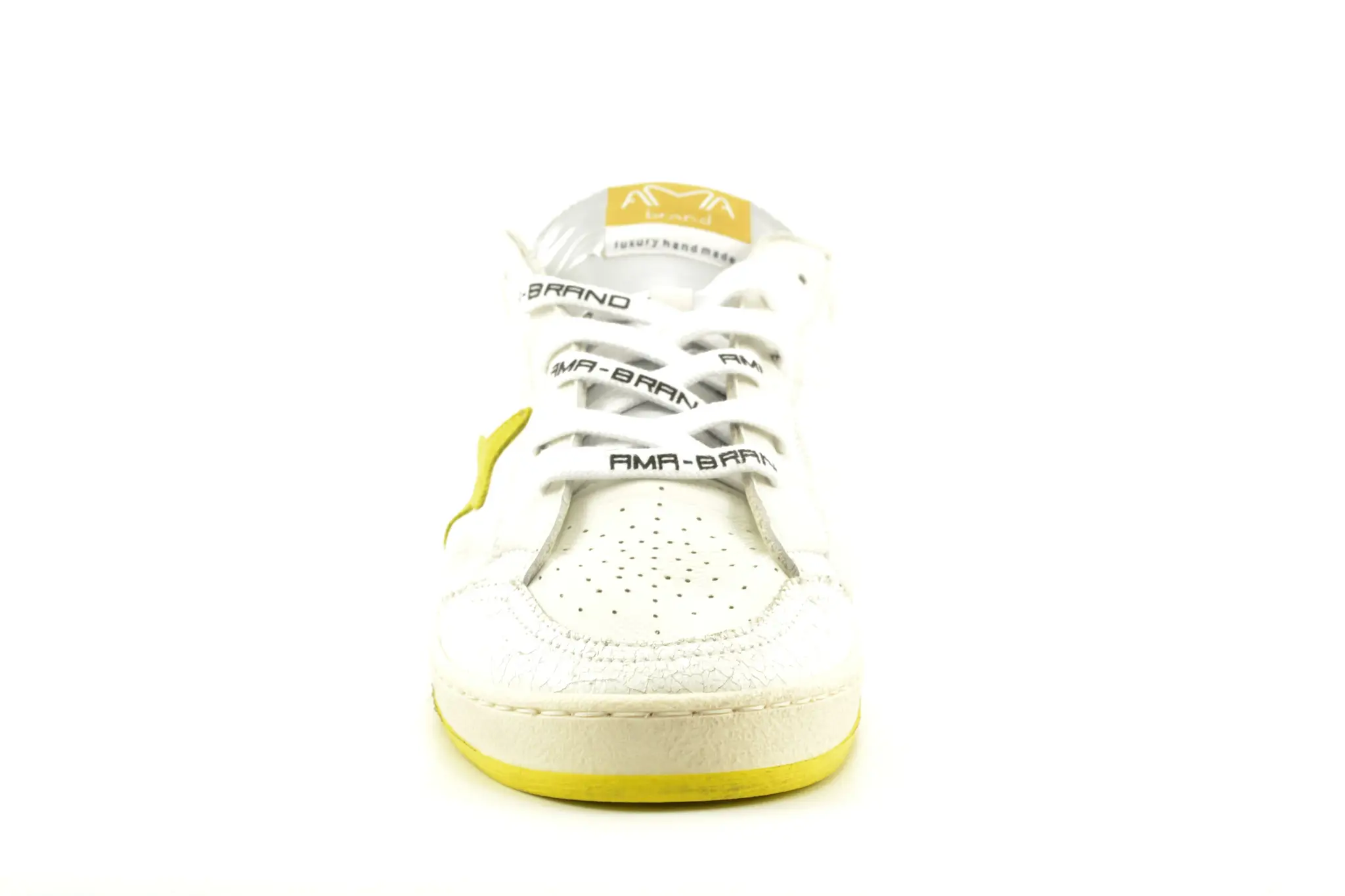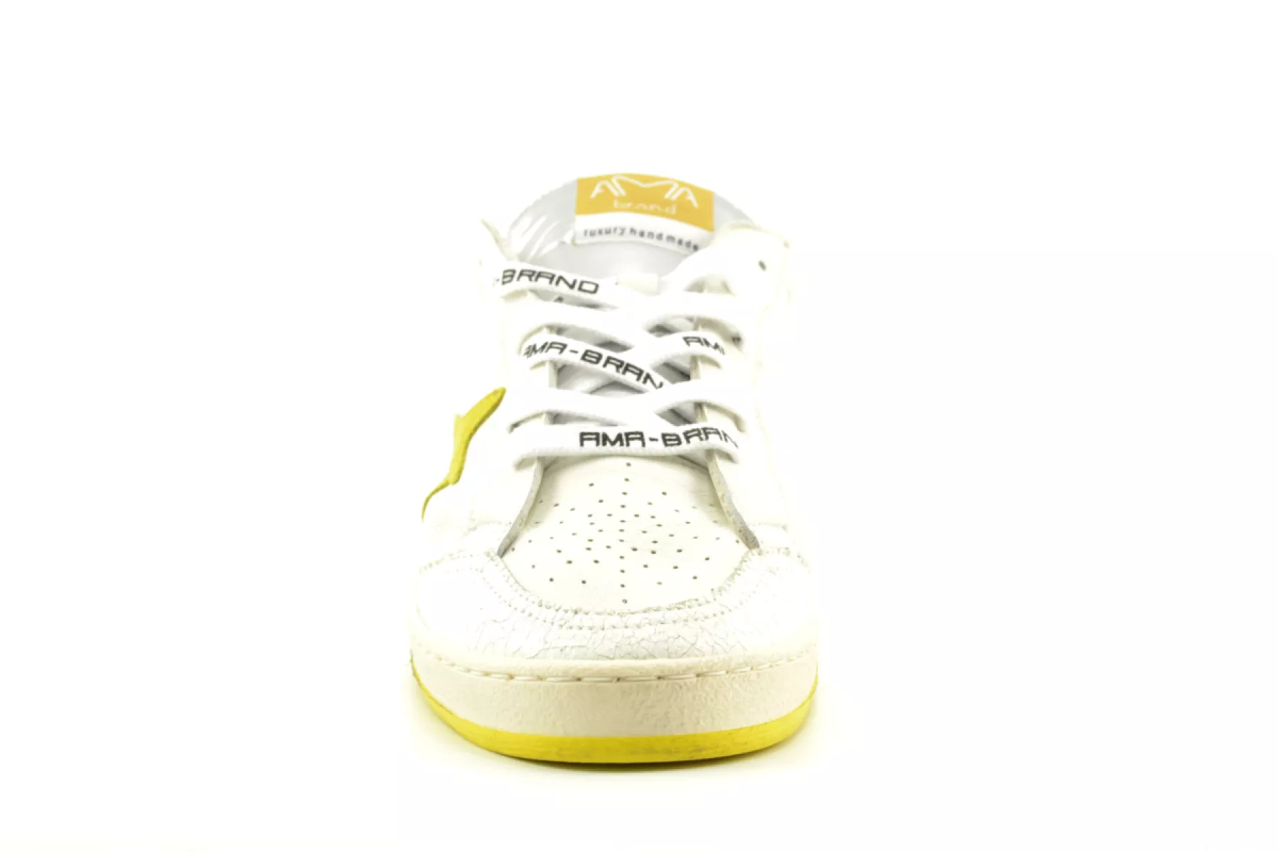 Handmade Italian sneakers with a different point of view. Dat is AMA! Deze luxe herensneakers in off white leer hebben zwart leren details. Het bekende logo van AMA vindt je op de tong, zij- en achterkant.