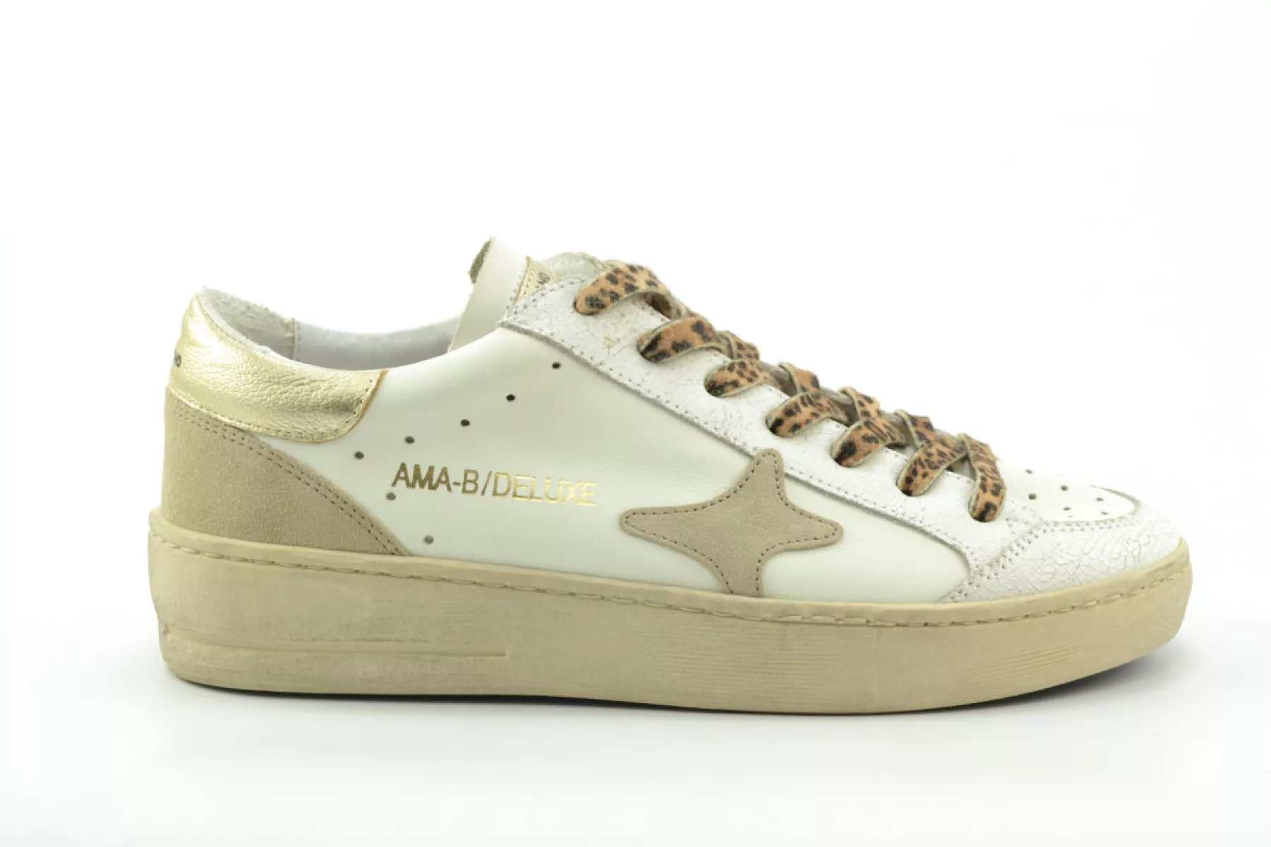Handmade Italian sneakers with a different point of view. Dat is AMA! Luxe damessneakers met petrol details. De branding op de tong en zij- en achterkant geven deze sneakers net dat beetje extra.