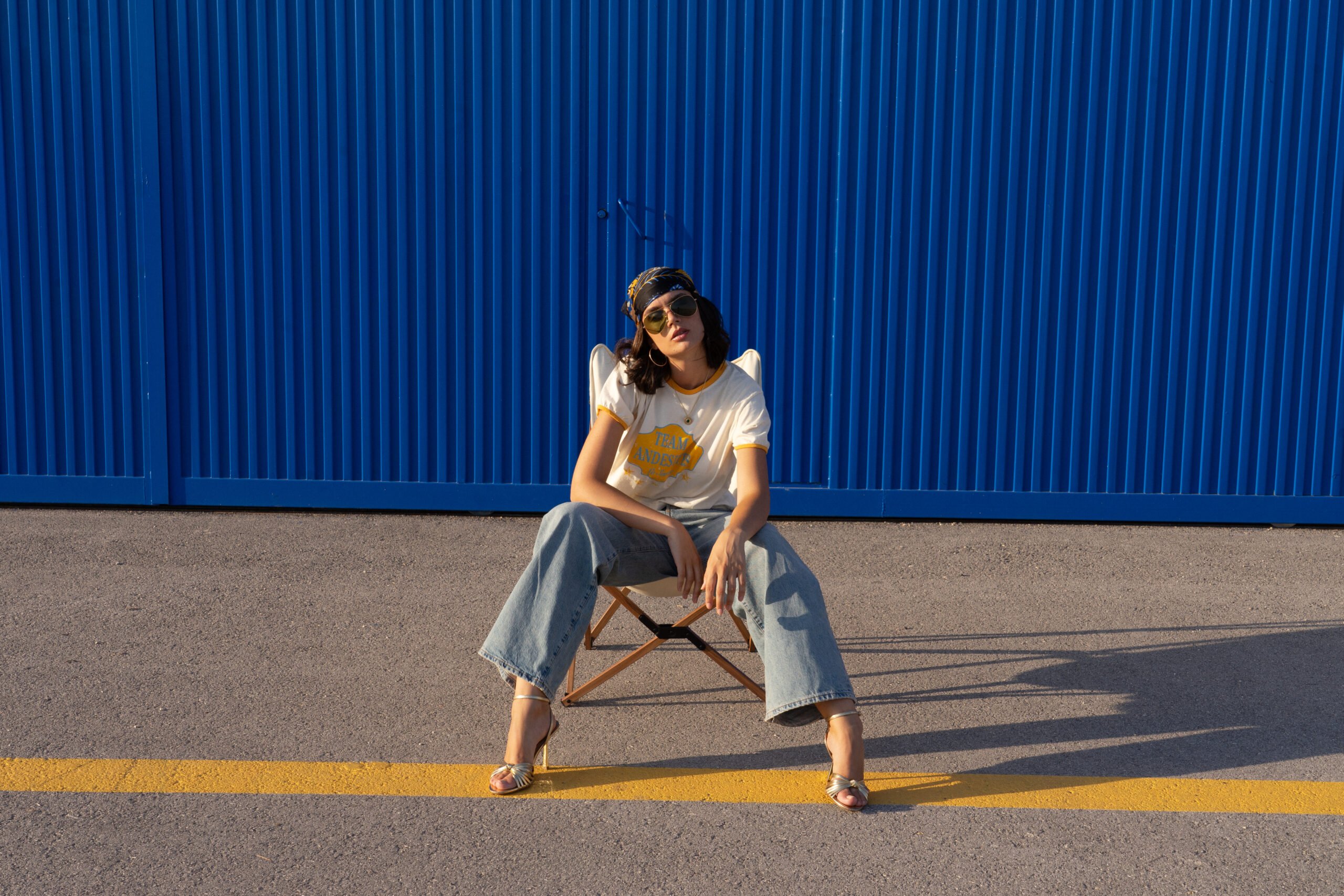 Mooi t-shirt met gele opdruk. De afbeelding is zo gemaakt dat het nostalgische elementen oproept.