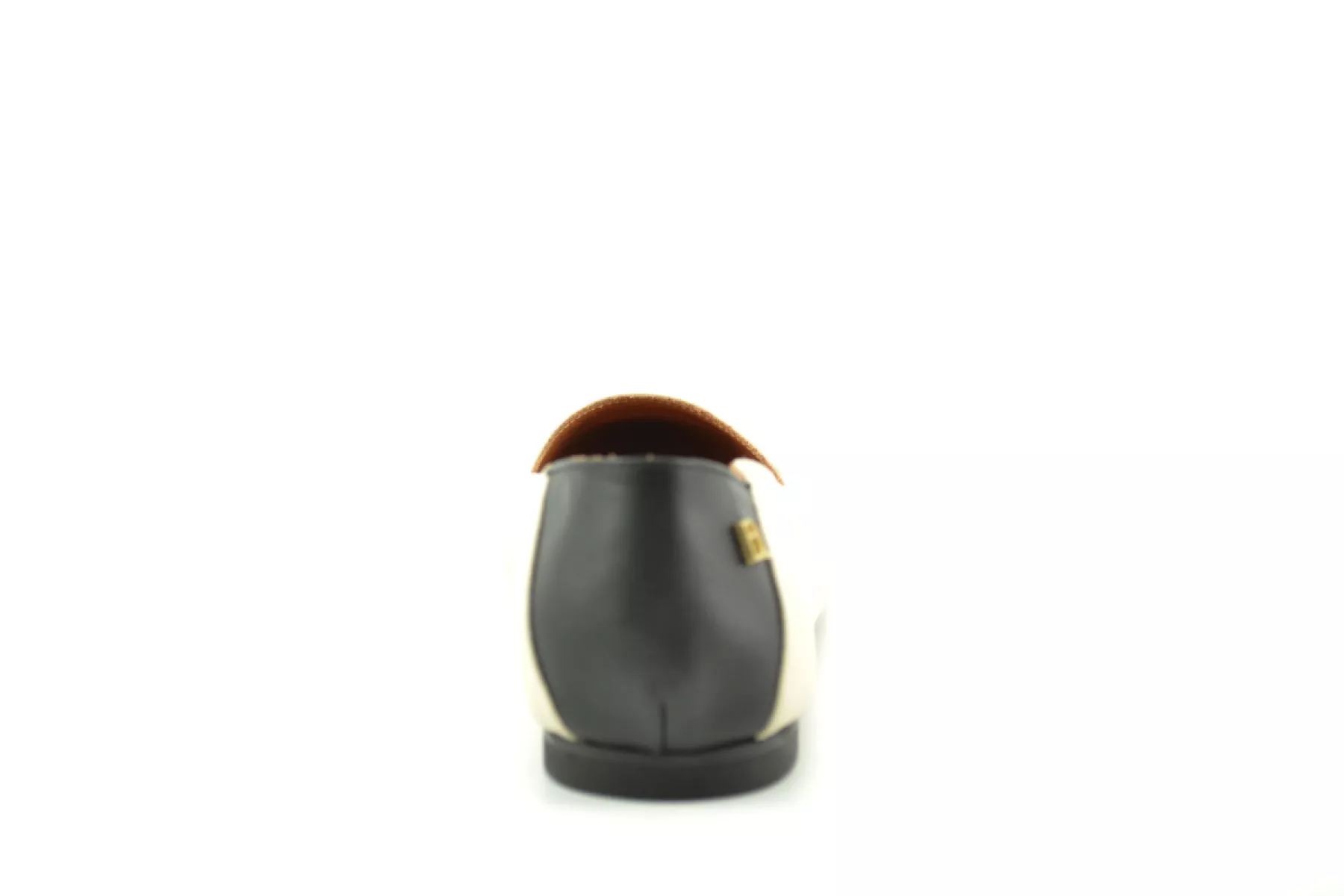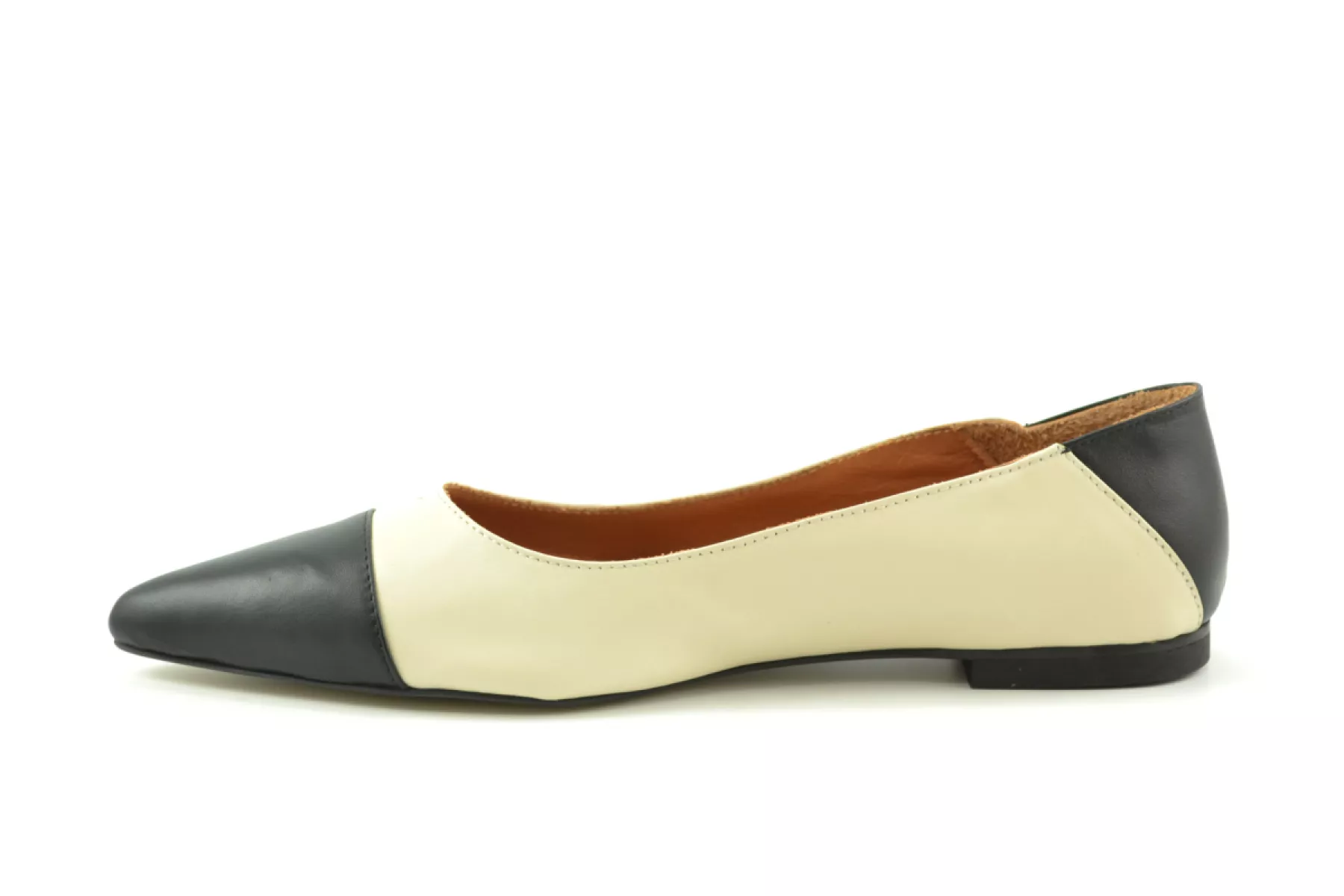 Babouche ballerina zwart-beige leer
