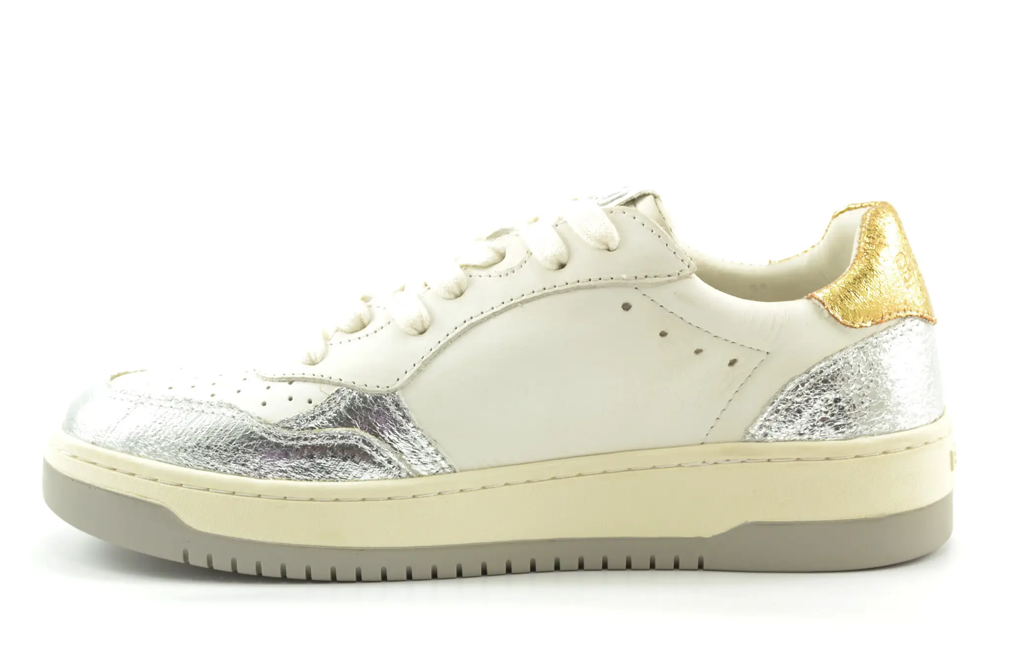 Back70 lage sneakers wit-zilver-goud leer
