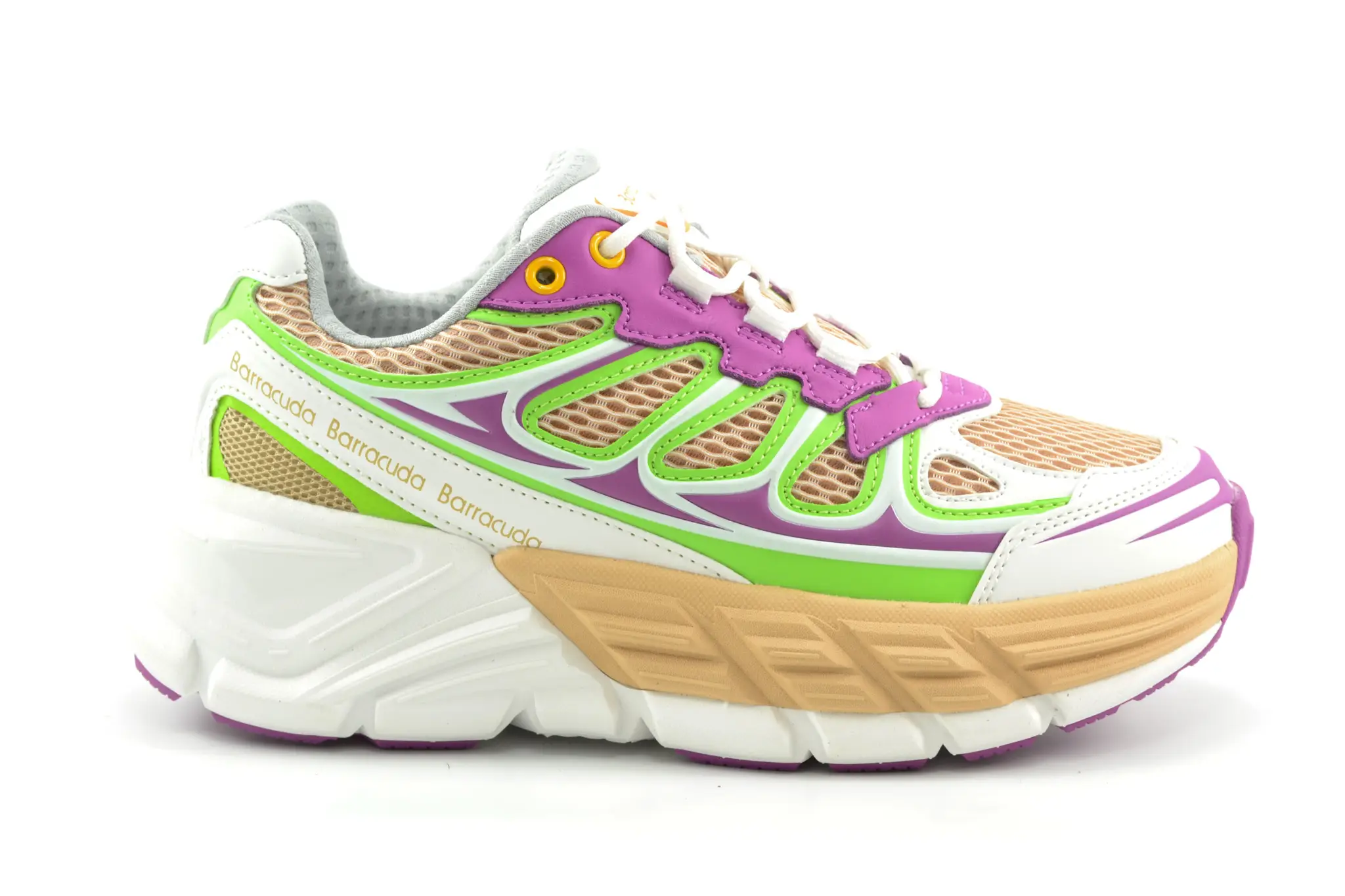 The new Barracuda Round-One sneaker is an excellent combination of style and comfort, perfect for a dynamic streetwear look. Their running-style design with green and purple finishes and details makes them suitable for any casual occasion, ensuring a fresh and contemporary appearance. The Barracuda Round-One sneakers are definitely a great choice for those seeking urban style without compromising on quality and comfort. Color: Purple/Green/Orange Material: