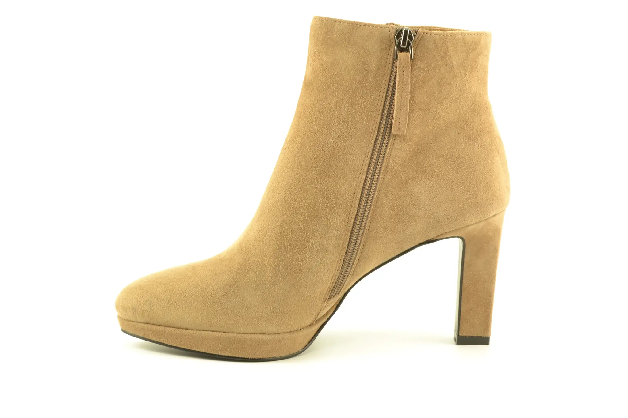 details: Het Spaanse merk Bibi Lou maakt een mooie collectie schoenen met een eigenwijze, vrouwelijke en krachtige uitstraling. Neem nou deze mooie taupe suede enkellaarsjes met een hakhoogte van 8.5 cm en een plateau onder de voorvoet, daar mag je toch mee gezien worden? Daarbij lopen ze nog eens supercomfortabel ook en hou je het er makkelijk een dag op vol!