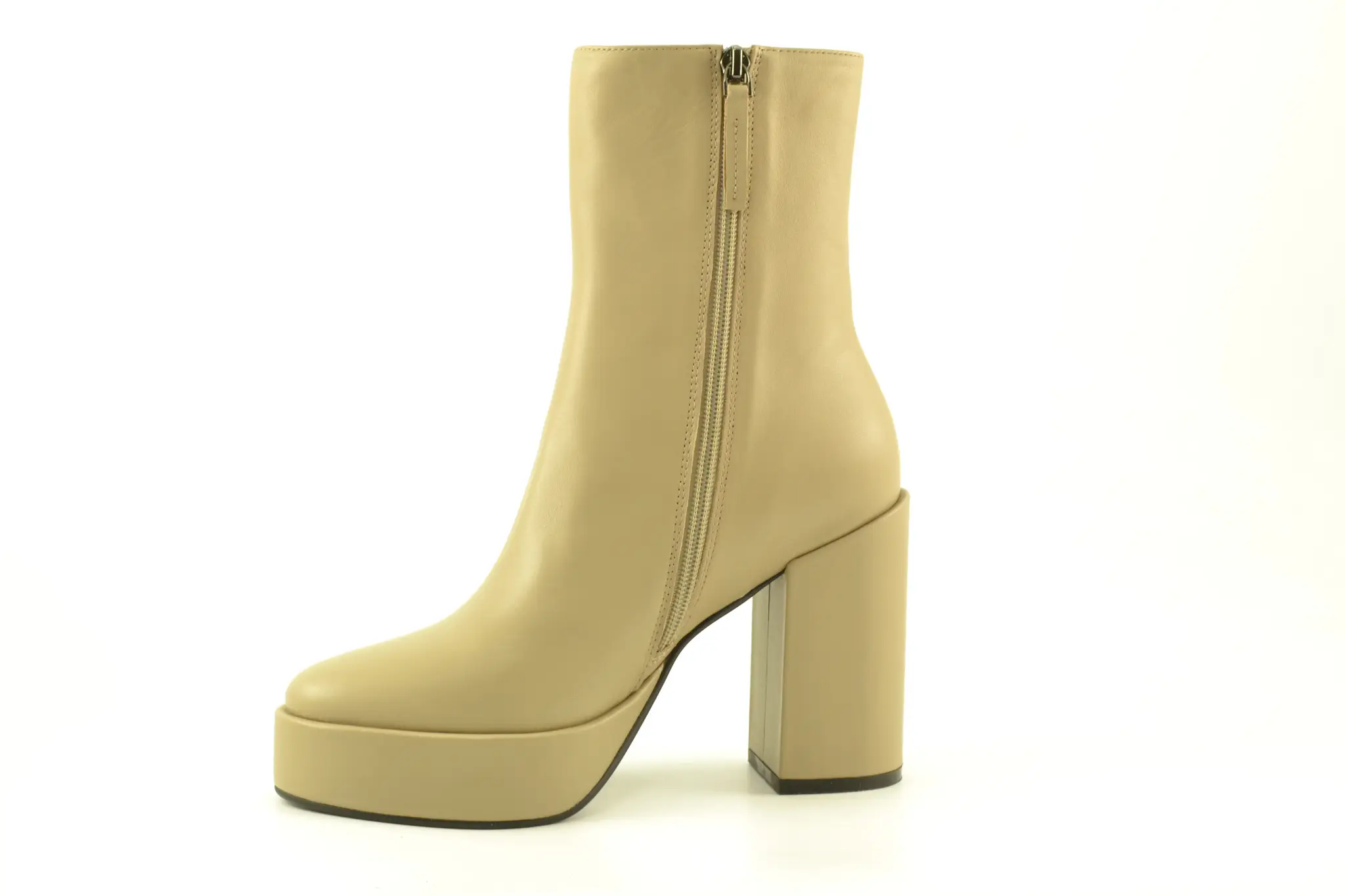 details: Het Spaanse merk Bibi Lou maakt een mooie collectie schoenen met een eigenwijze, vrouwelijke en krachtige uitstraling. Neem nou deze mooie taupe leren enkellaarsjes met een hakhoogte van 10 cm en een plateau van 3 cm onder de voorvoet, daar mag je toch mee gezien worden? Daarbij lopen ze nog eens supercomfortabel ook en hou je het er makkelijk een dag op vol!