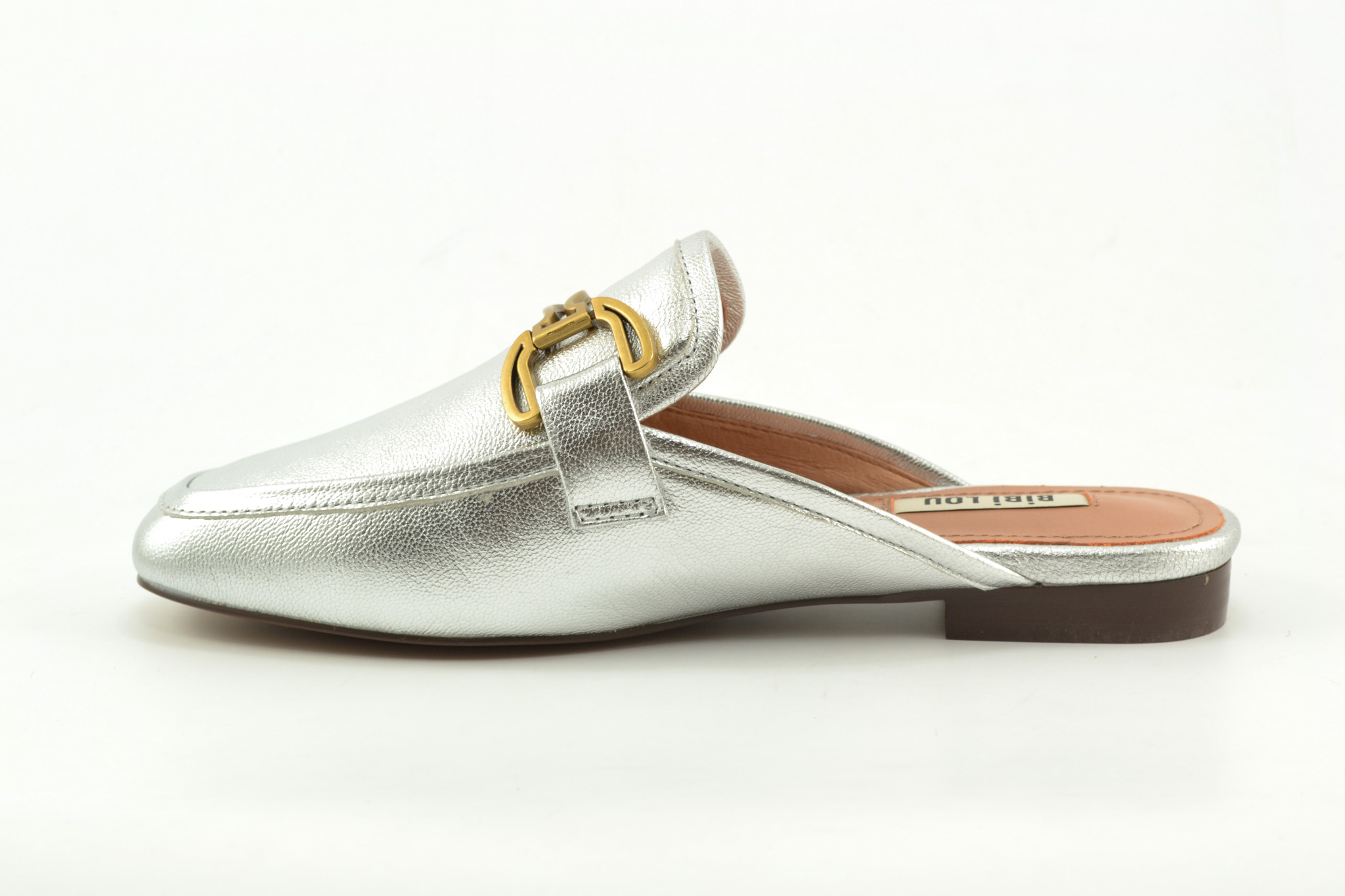 Het Spaanse merk Bibi Lou maakt een mooie collectie schoenen met een eigenwijze, vrouwelijke en krachtige uitstraling. Neem nou deze mooie zilveren leren slippers met een goudkleurig detail op de voorvoet, daar mag je toch mee gezien worden? Daarbij lopen ze nog eens supercomfortabel ook en hou je het er makkelijk een dag op vol!