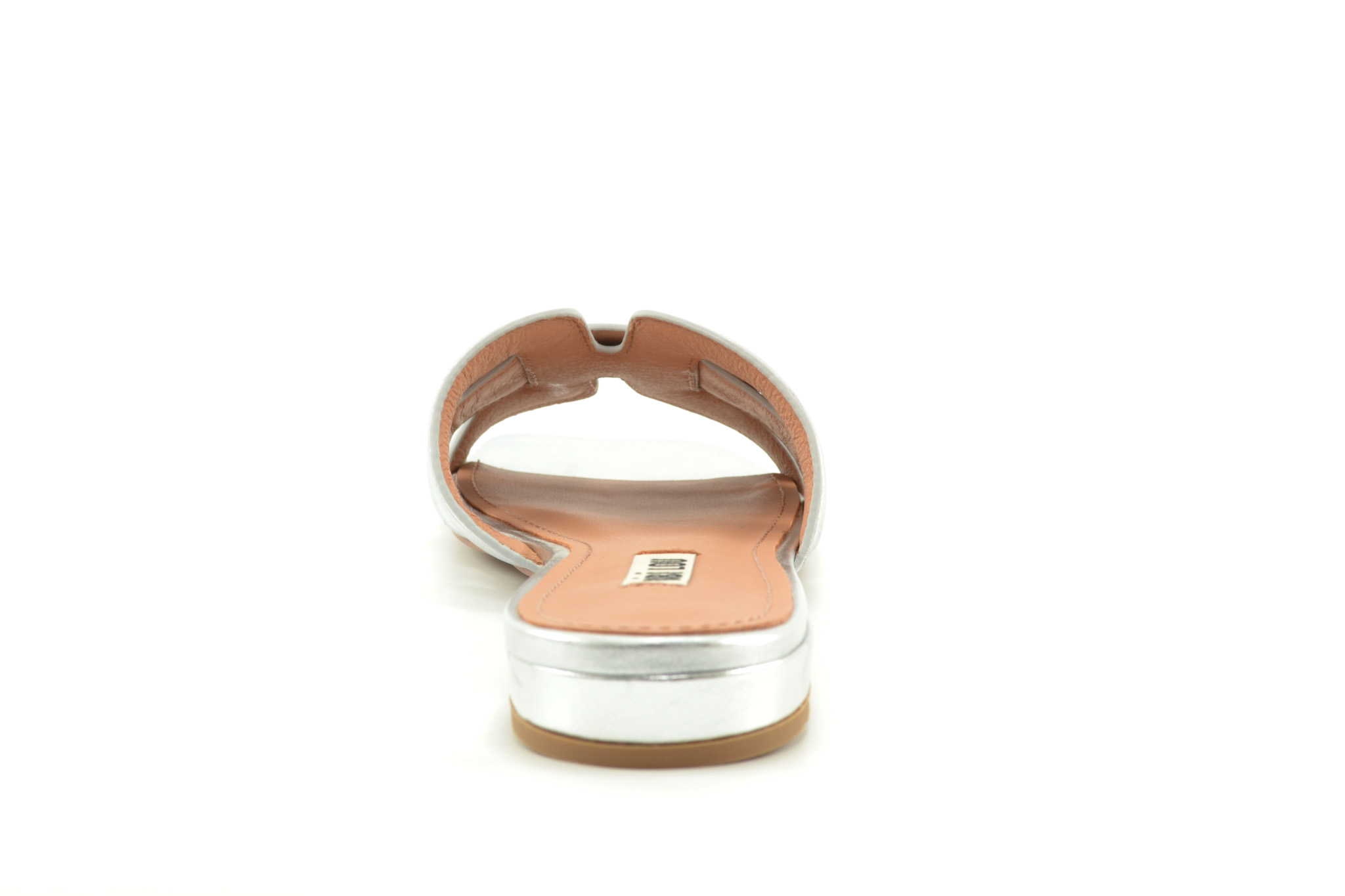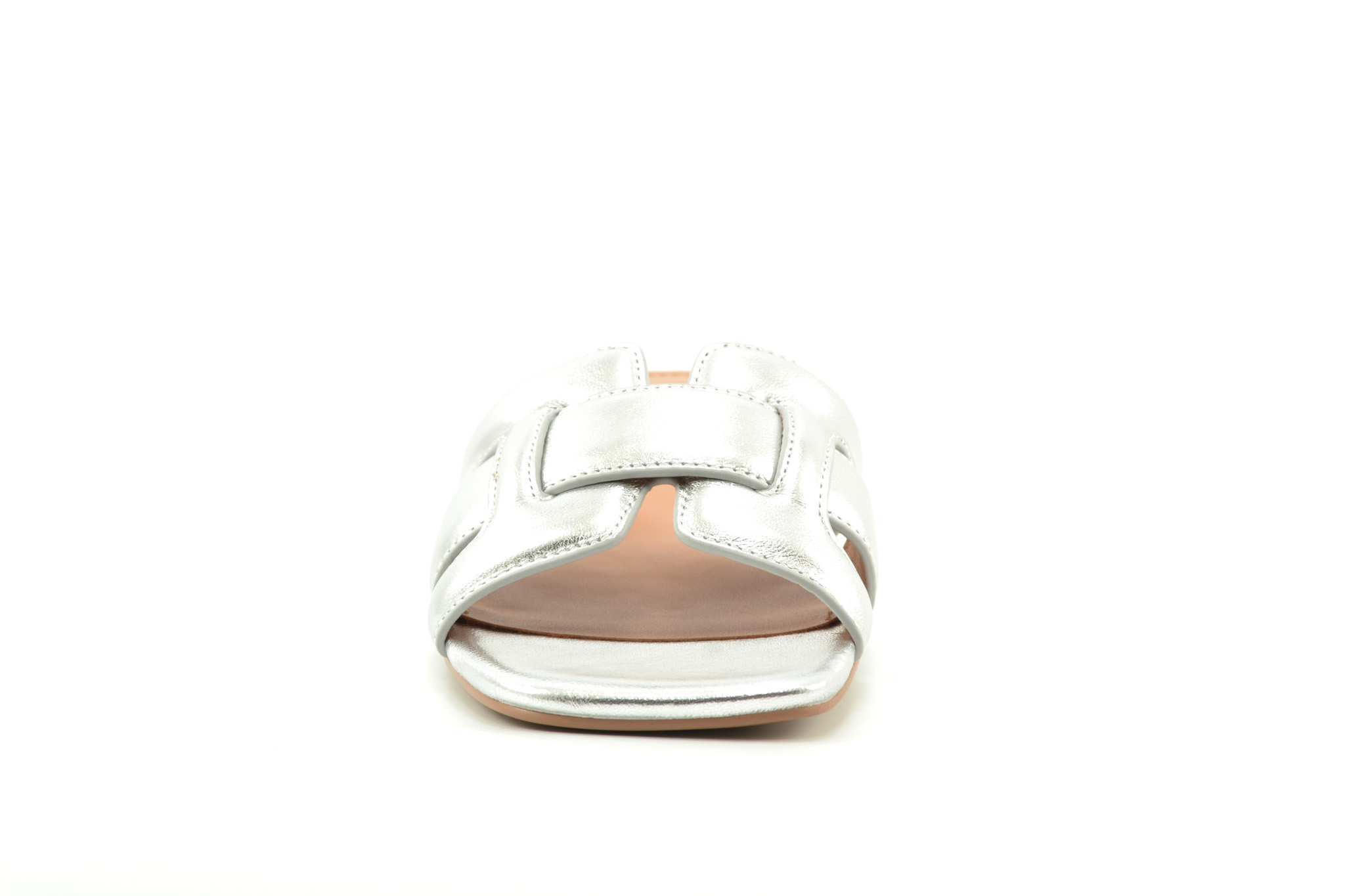 details: Het Spaanse merk Bibi Lou maakt een mooie collectie schoenen met een eigenwijze, vrouwelijke en krachtige uitstraling. Neem nou deze mooie zilverkleurige slippers met een carré neus, daar mag je toch mee gezien worden? Daarbij lopen ze nog eens supercomfortabel ook en hou je het er makkelijk een dag op vol!