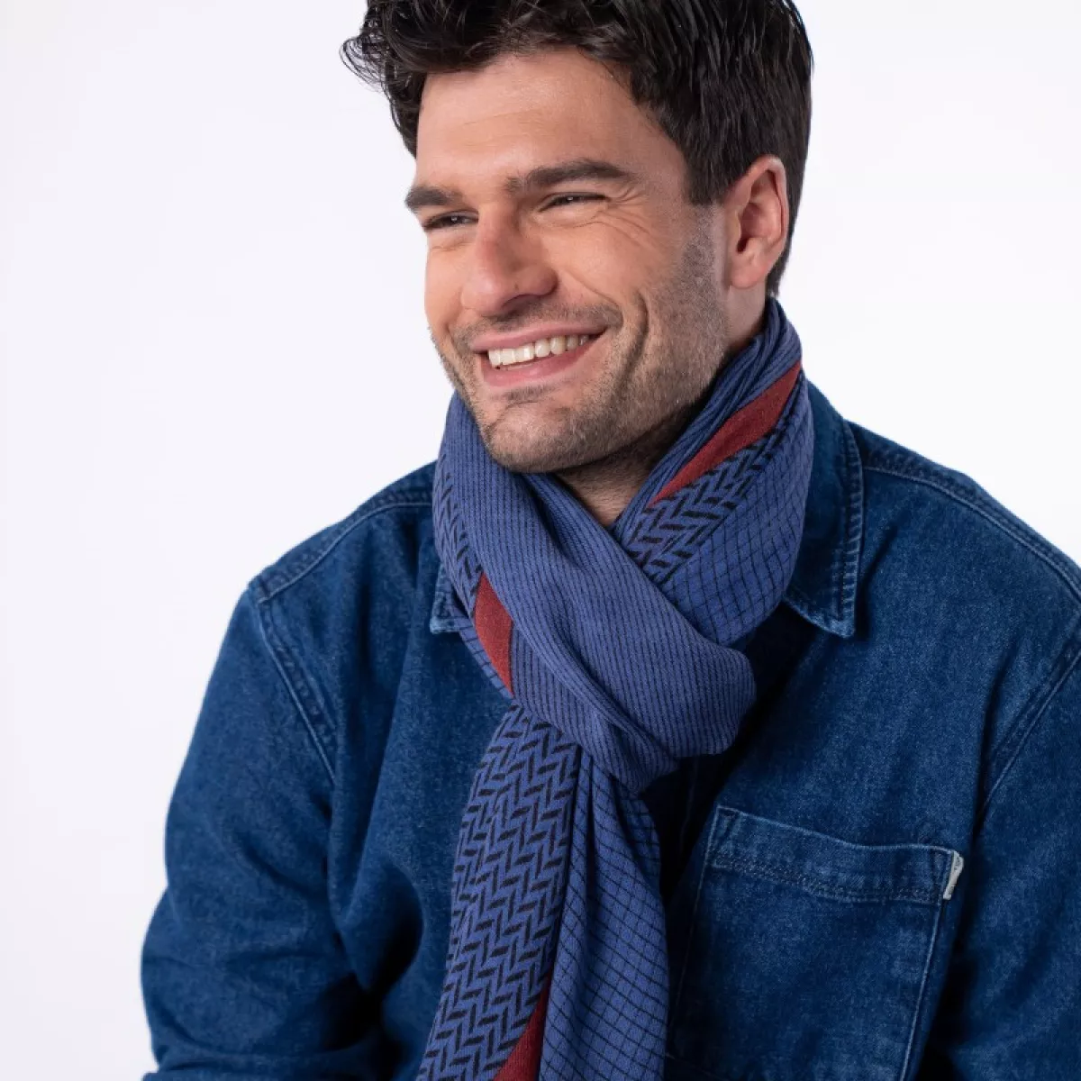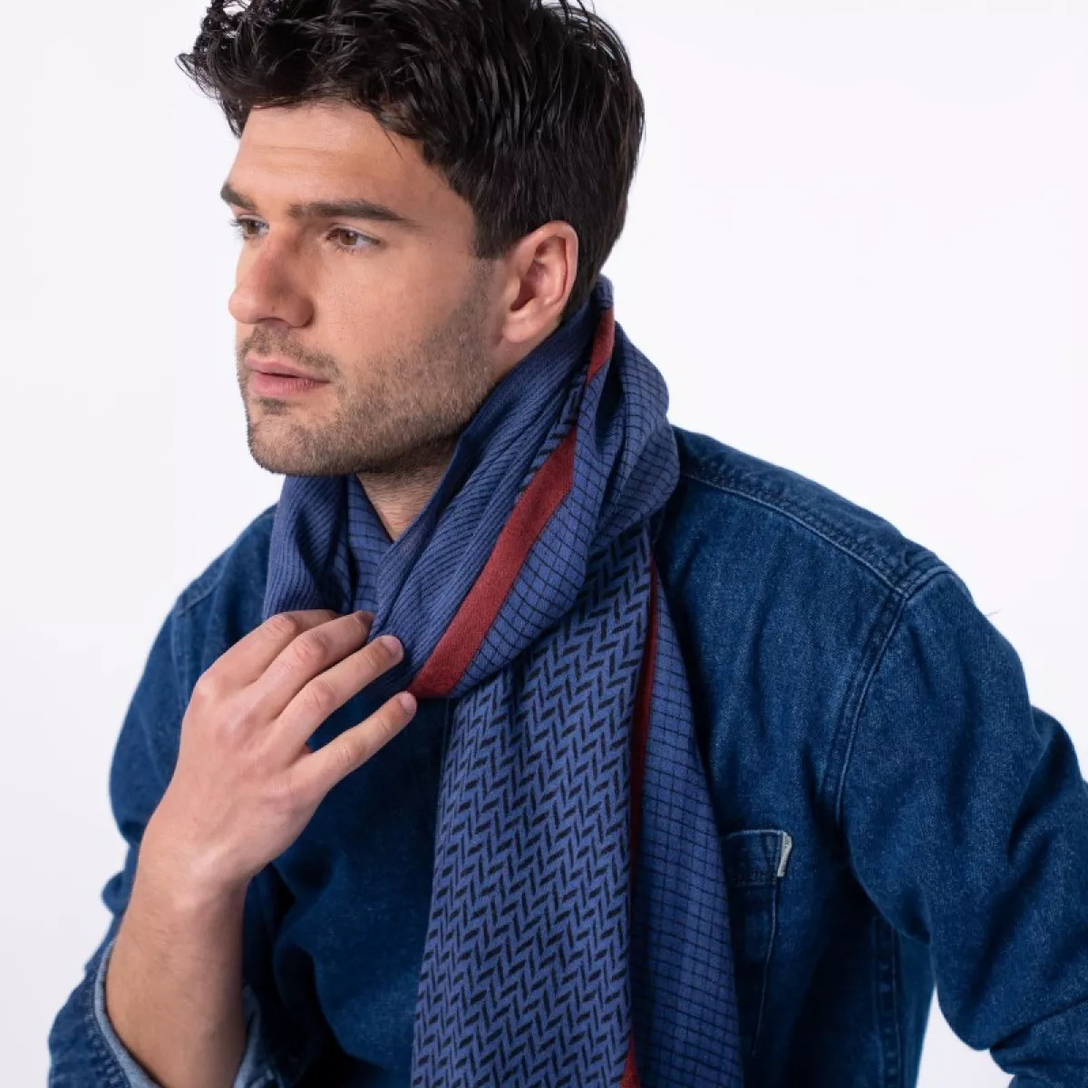 100% wollen herensjaal zacht en warm draag in het koele seizoen afmeting 185 x 70 cm blauw-rood