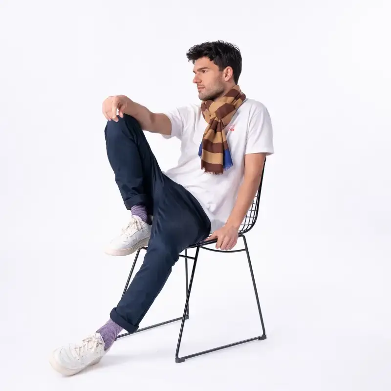 100% wollen herensjaal zacht en warm draag in het koele seizoen afmeting 185 x 70 cm bruin-blauw