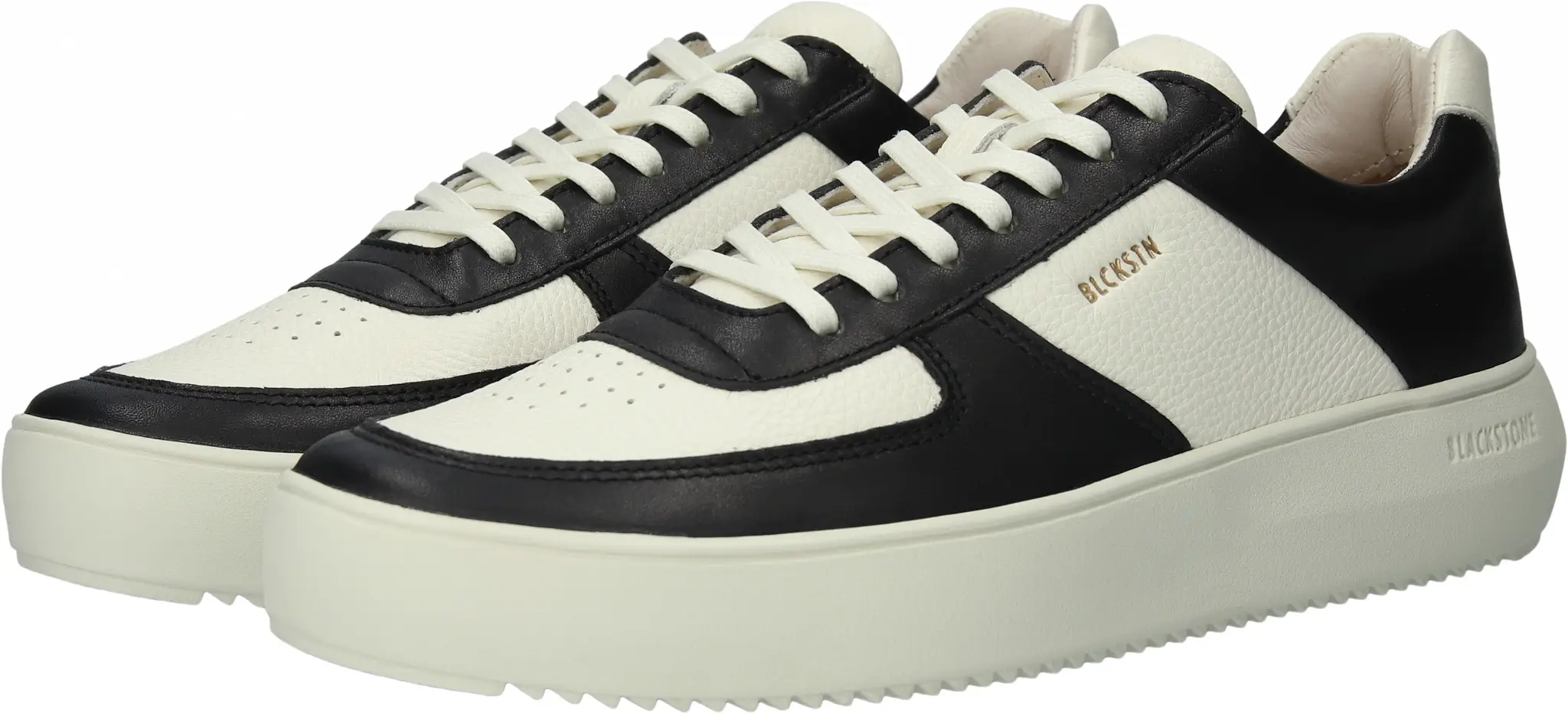Blackstone wit-zwarte leren sneakers