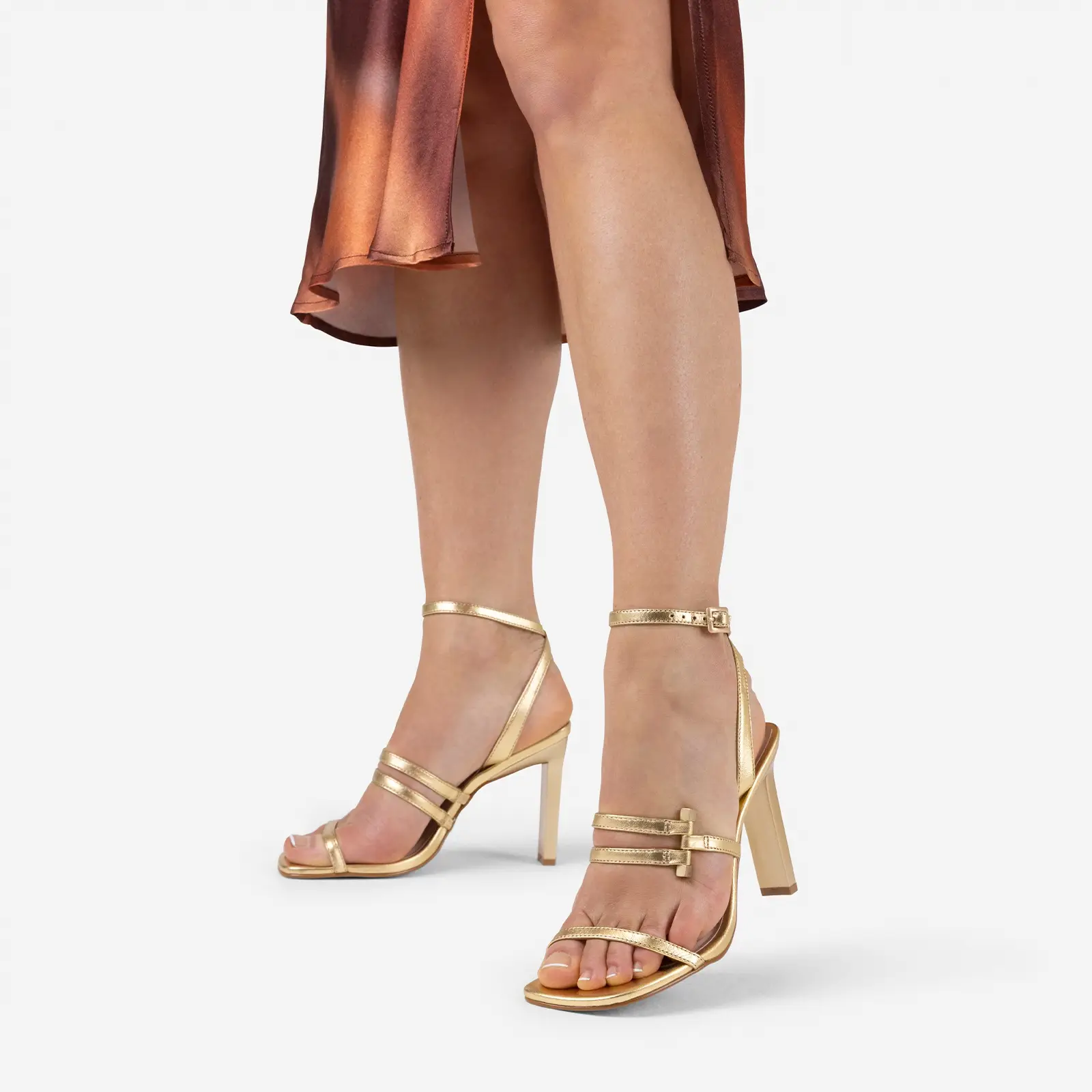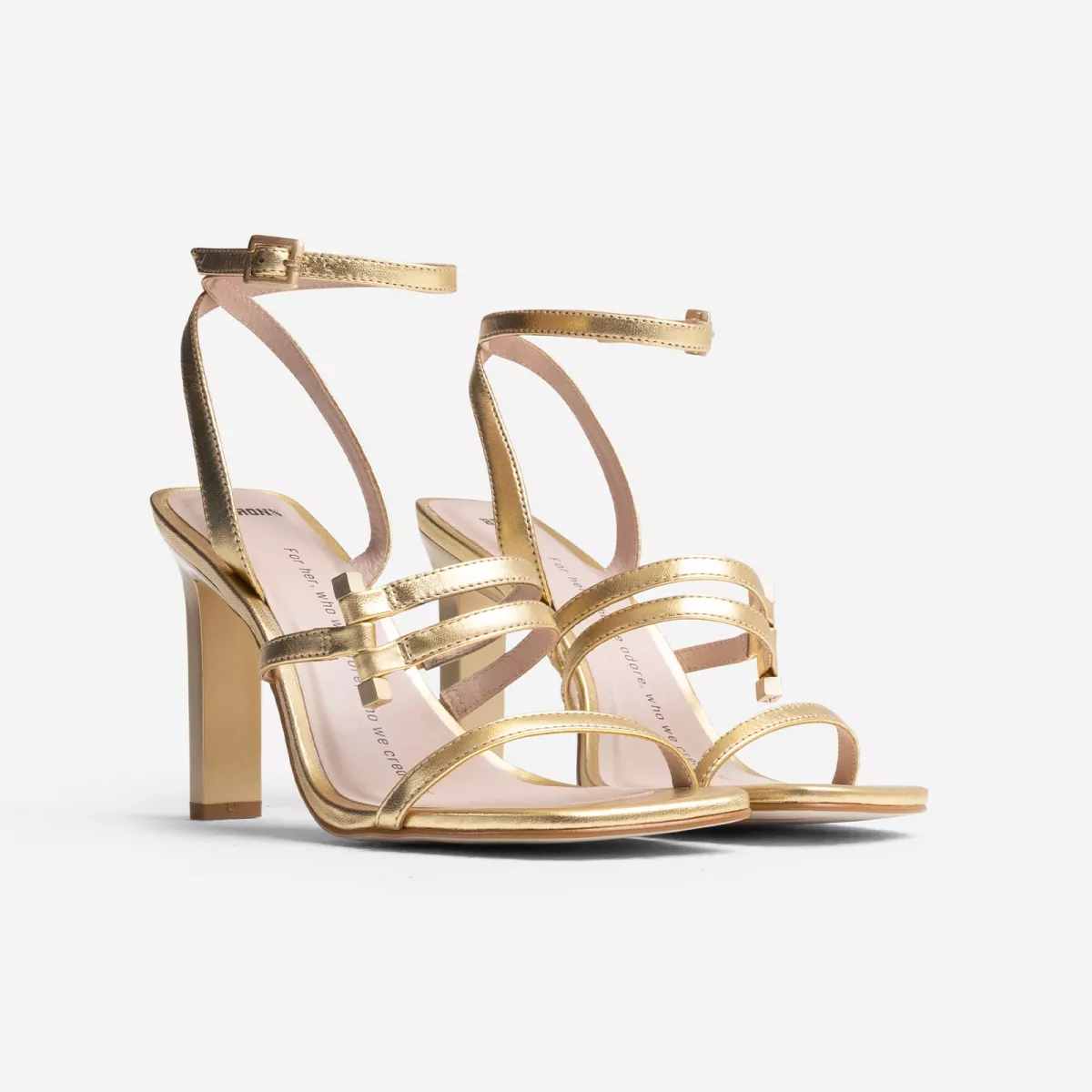 De New Aladin is een op het archief geïnspireerde sandaal met hak, gemaakt van more sustainable leer. De heeled sandal heeft een smalle stiletto hak, met een hakhoogte van 9,5cm. Deze New Aladin sluit door middel van een dun riempje, met pin gesp, rond de enkel en boven de instap.