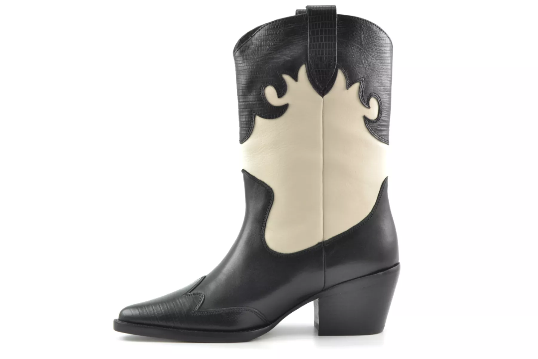 De Jukeson is terug! Een perfecte keuze voor wie op zoek is naar een mix van stijl en comfort. Kleed je met gemak aan terwijl je het kenmerkende comfort van BRONX westernlaarzen ervaart. De Jukeson heeft een combinatie van zachte hagedis en nappa materialen, geaccentueerd door contrasterend zwart en wit. De vrouwelijke bovenlijn voegt een extra vleugje elegantie toe, terwijl de handgemaakte zolen met Italiaanse fineerhakken uitzonderlijk vakmanschap laten zien.