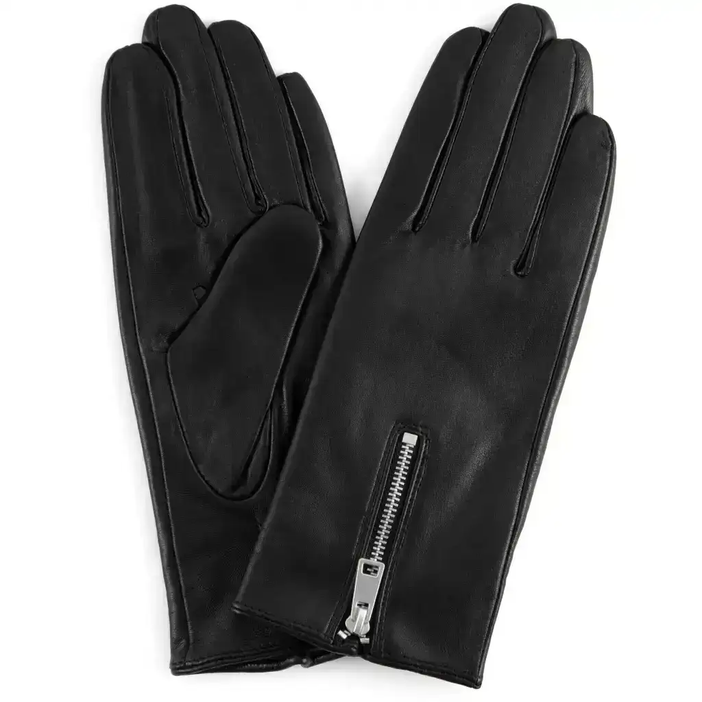 mooie zachte leren basishandschoen in zacht leer met een warme wollen voering en zilverkleurige rits