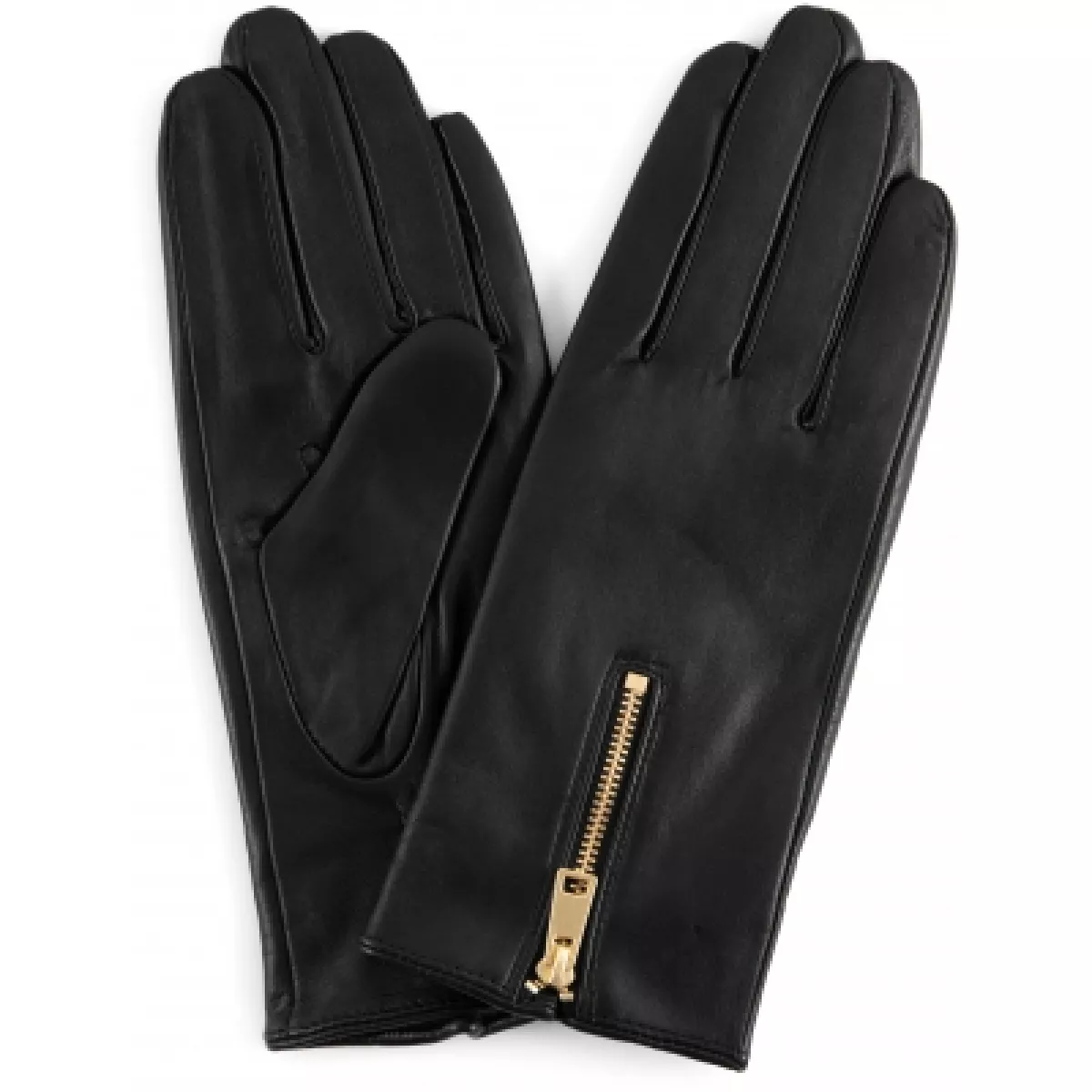 mooie zachte leren basishandschoen in zacht leer met een warme wollen voering en goudkleurige rits