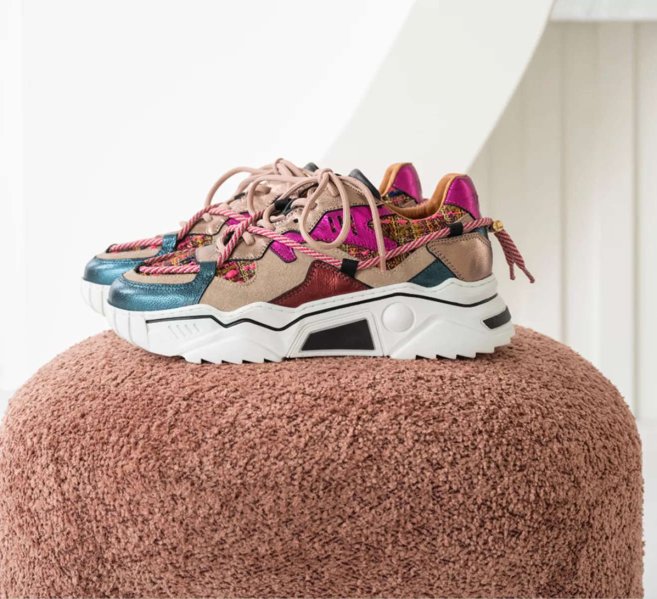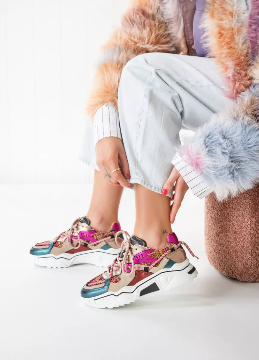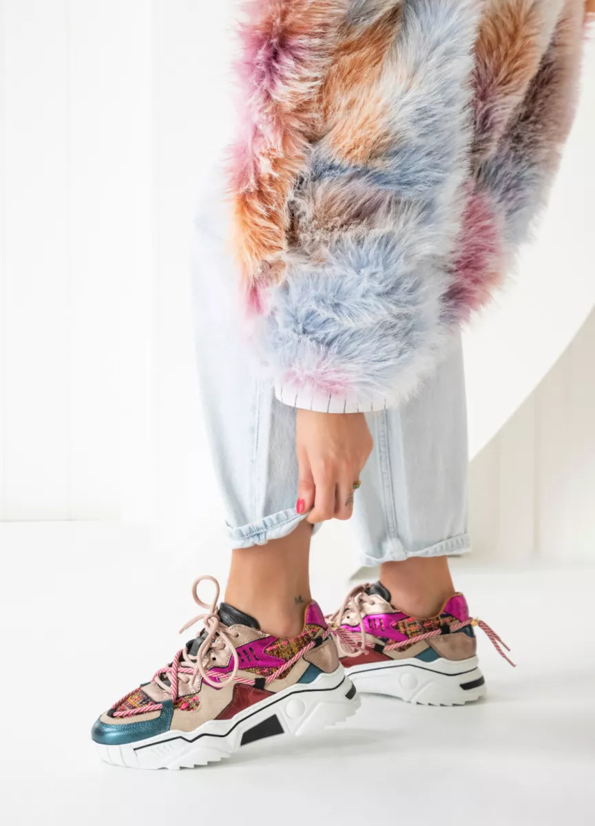 De Jupiter sneaker zie je ook dit seizoen weer terug in nieuwe kleuren. Een sneaker met een hoge / dikke zool als dit model is een must in je schoenenkast. Deze sneaker voor dames is aan de buitenzijde van leer en tweed stof en de binnenzijde is volledig van leer. De veters lopen door op de hak, dus opvallen doe je dan ook zeker met deze sneakers aan je voeten! Doe jij mee met de trend?