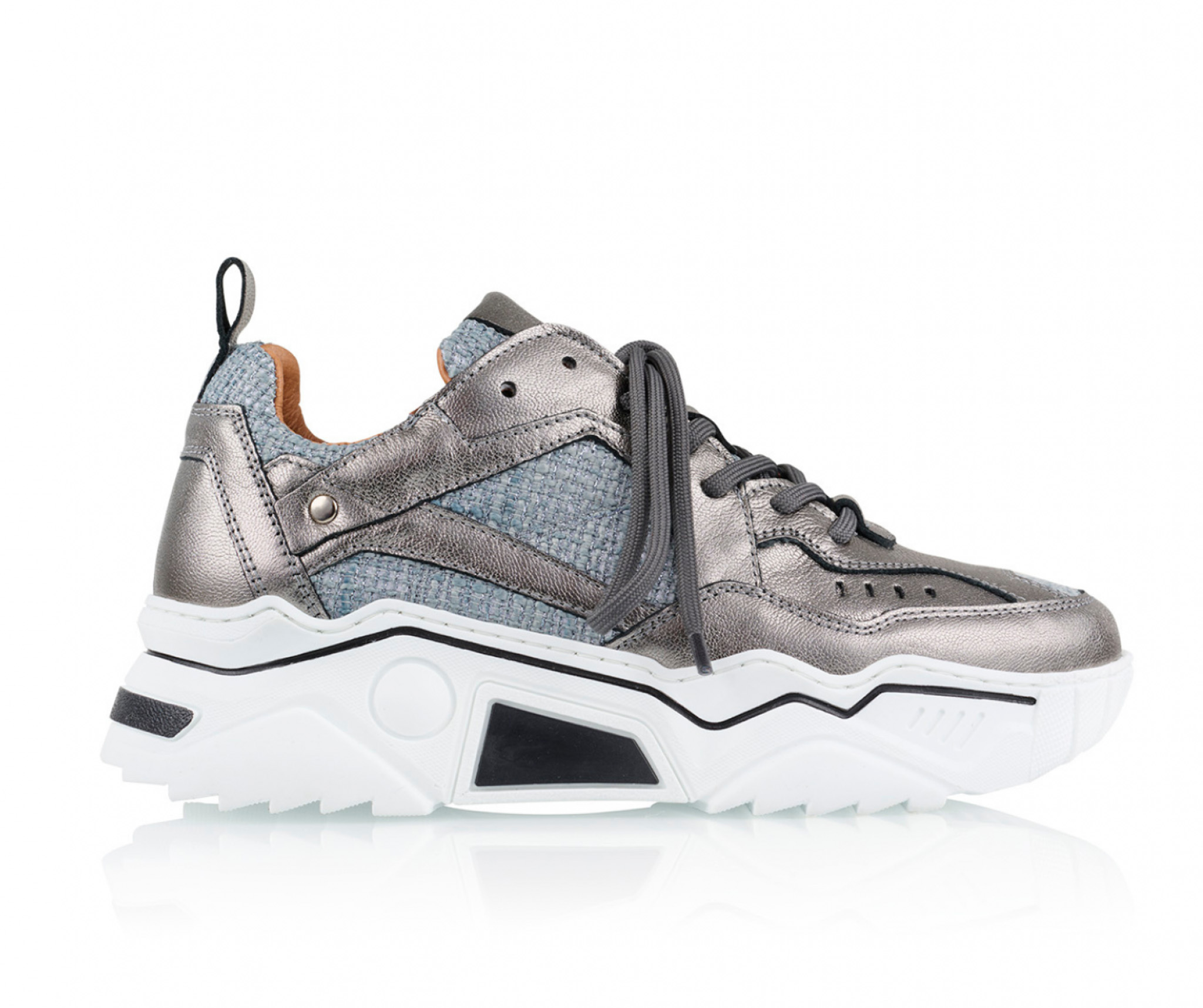 Maxi sneakers zijn helemaal hot! Een sneaker met een chunky zool als dit model is een must in je schoenenkast. Deze sneaker met metallic details voor dames is aan de buitenzijde van metallic en leer en aan binnenzijde volledig van leer. Door de chunky zool is de sneaker perfect te combineren met verschillende outfits. Zie jij de Pluto al aan je voeten?