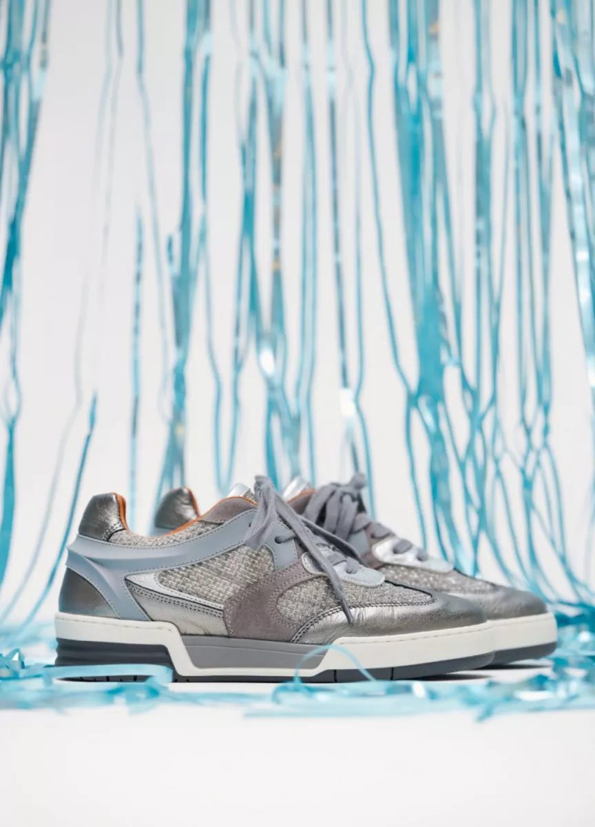 Een basic sneaker is een musthave voor in je kast omdat het een match is met elk kledingitem. Deze sneaker is aan de binnenkant van leer en aan de buitenkant gemaakt van leer, metallic en tweed stof. Deze sneaker heeft een fijn voetbed waardoor je op wolkjes loopt.