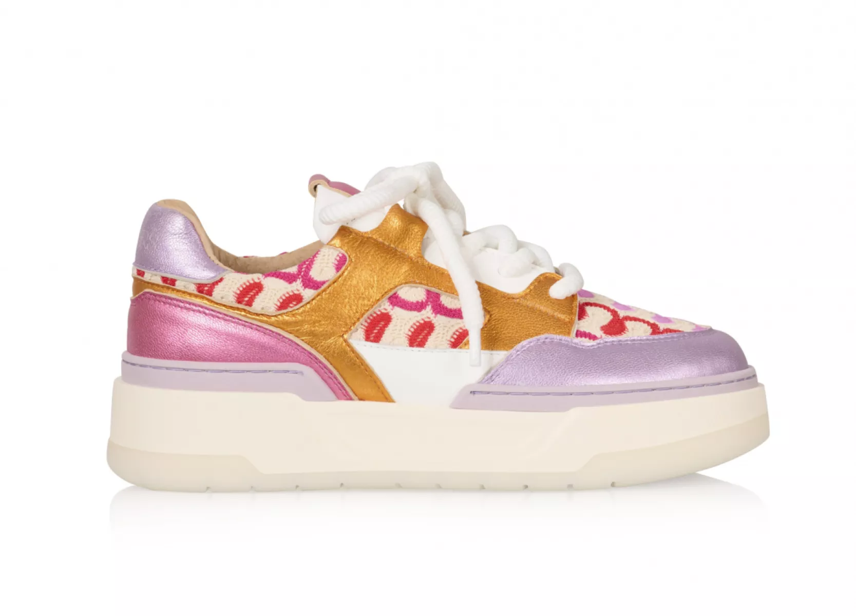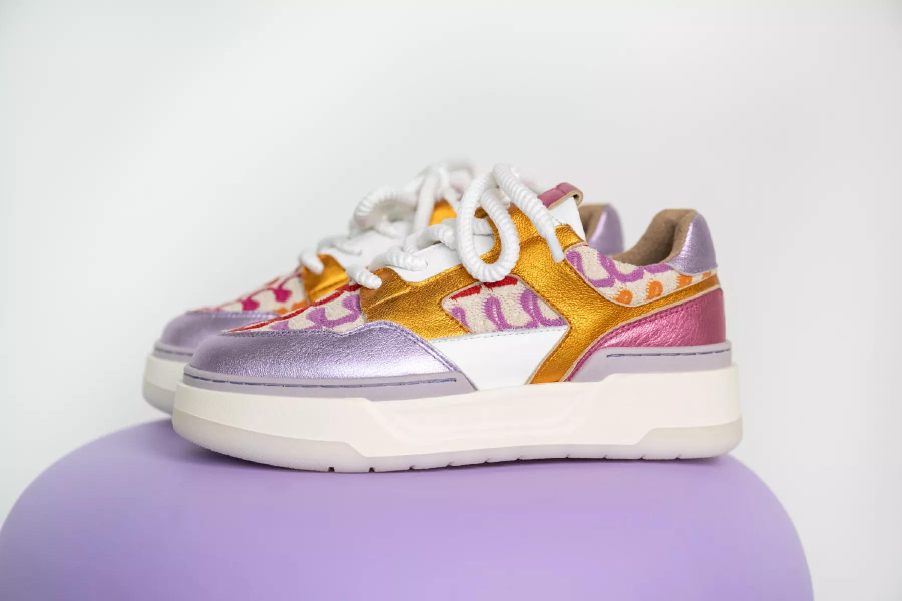 De Winton sneaker is nieuw bij DWRS. Een sneaker met een hoge / dikke zool als dit model is een must in je schoenenkast. Deze sneaker voor dames is aan de buitenzijde van metallic en geborduurde stof en de binnenzijde is volledig van leer. Met de dikke veters door de schoen val je zeker op! Doe jij mee met de trend?