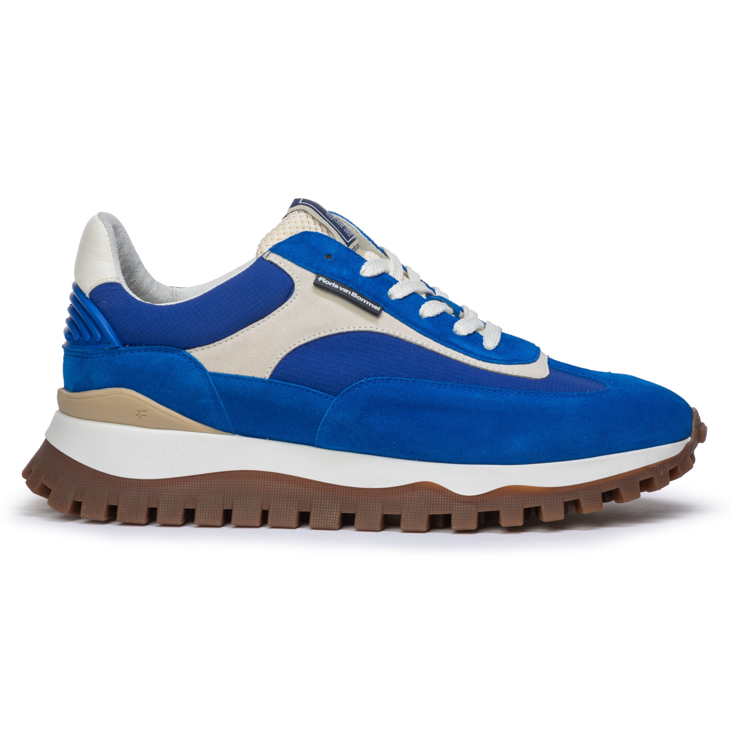 Deze sneaker is uitgevoerd met een karakteristieke zool met sportief blokjes reliëf. Dit reliëf komt ook terug in het rubberen label op de tong. De sneaker is voorzien van kwalitatief hoogwaardige lederen voering en een comfortabel uitneembaar voetbed. Dit voetbed is eventueel te vervangen voor een eigen voetbed of steunzool. Deze variant is uitgevoerd in blauw suède met mooi nuances in de vleug.