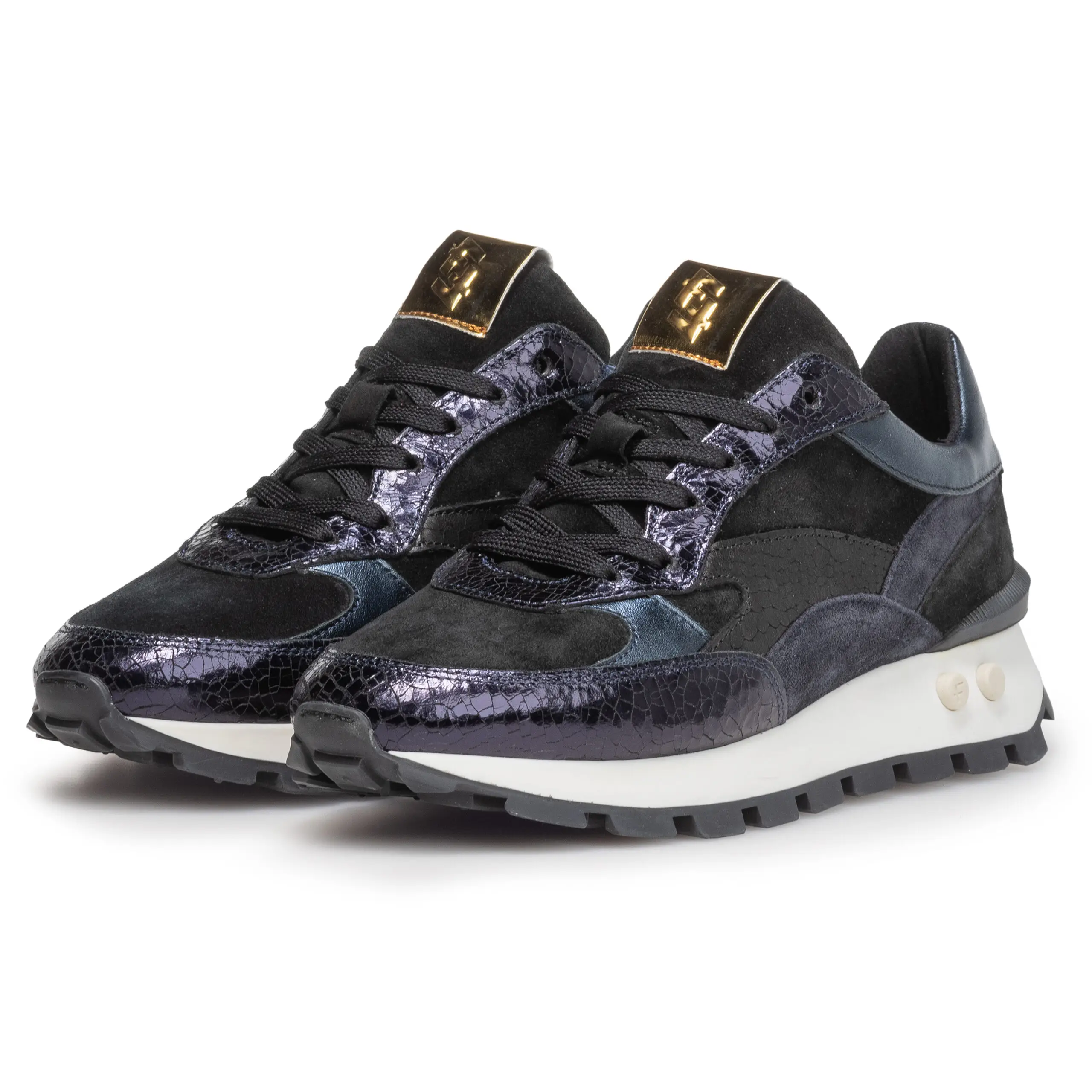 Deze sportieve runner is uitgevoerd met een markante zool. Het loopvlak bestaat uit stevige blokjes die goed zichtbaar zijn vanaf de zijkant. Op de zijkant van de zool zijn 2 ronde plugs aangebracht en bij de hiel is een robuuste stabilizer op de zool gemonteerd. Op de lekkere zachte tong is een label gestikt met op de voorkant een FvB logo en op de achterkant een levensinzicht van Floris om tot de kern van het leven door te dringen. In zijn totaliteit is dit een lekkere vlotte trendy sneaker waar je uren aan een stuk op kunt lopen. Deze sneaker is uitgevoerd in een rijke materialenmix van goudtinten.