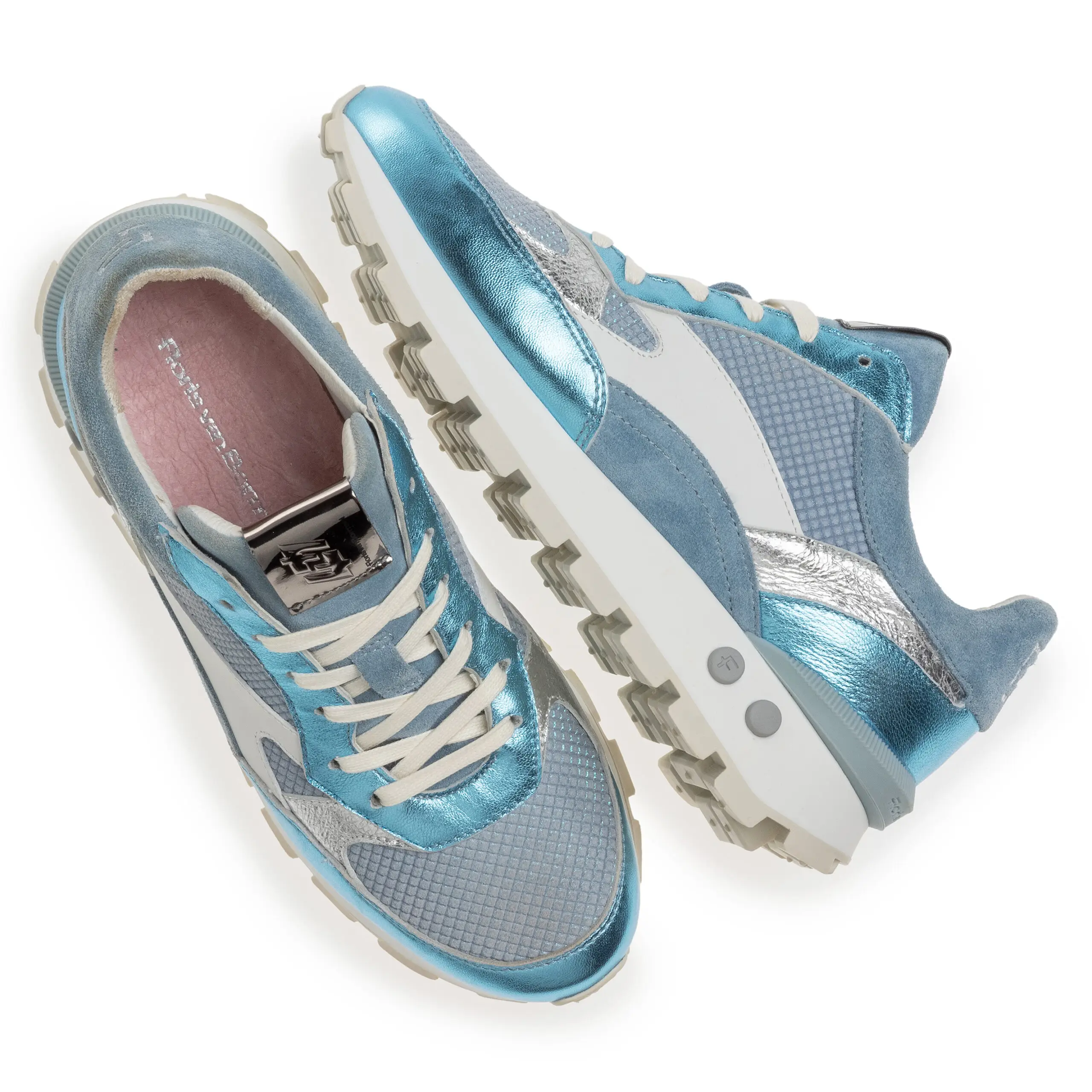Artikelnummer SFW-10098-42-01 Blokki 04.09 Kleur Blauw (lightblue) Materiaal metallic leer-mesh Voering Leer Zooltype Rubber Leest & wijdte 7695 G Maakwijze AGO Uitneembaar voetbed Ja