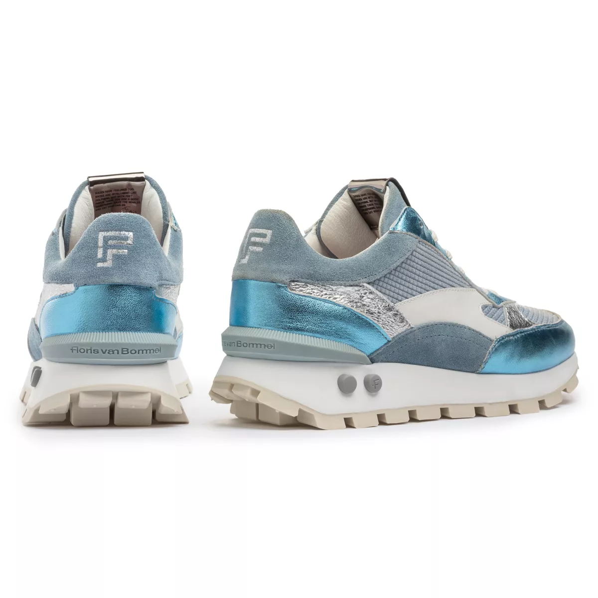 Deze sportieve runner is uitgevoerd met een markante zool. Het loopvlak bestaat uit stevige blokjes die goed zichtbaar zijn vanaf de zijkant. Op de zijkant van de zool zijn 2 ronde plugs aangebracht en bij de hiel is een robuuste stabilizer op de zool gemonteerd. Op de lekkere zachte tong is een label gestikt met op de voorkant een FvB logo. In zijn totaliteit is dit een lekkere vlotte trendy sneaker waar je uren aan een stuk op kunt lopen. Deze sneaker is uitgevoerd in een rijke materialenmix van kleuren zoals wit en blauw.