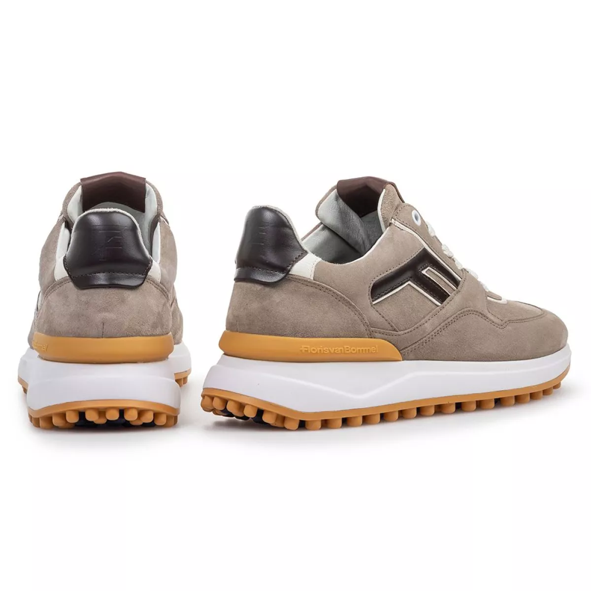 Deze uitvoering van onze Noppi sneaker bestaat uit een rijke suede in de kleur lichtbruin. Het off-white deel van de noppenzool is vervaardigd uit lichtgewicht EVA materiaal. Het loopvlak is gemaakt van slijtvast TPU materiaal. De stabilizer achter bij de hiel is voorzien van het Floris van Bommel logo. De binnenkant van de schoen is afgewerkt met een kwalitatief hoogwaardige lederen voering en een uitneembaar voetbed.