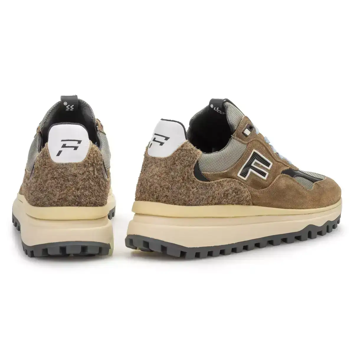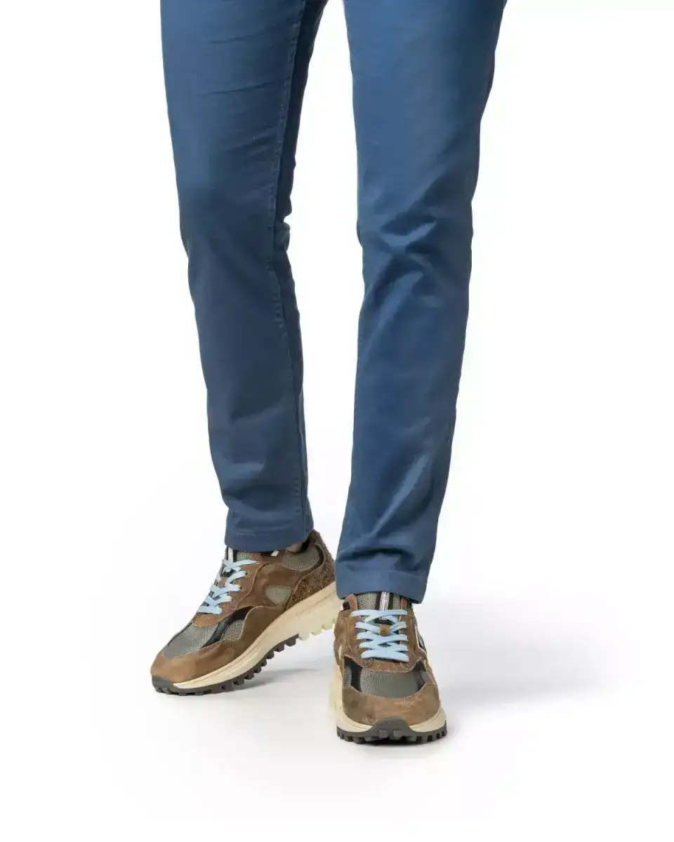 Dit is De Gripper, een sneaker op een robuuste runnerzool met bij de hiel een langgerekte stabilizer. De sneaker is uitgevoerd met kwalitatief hoogwaardige lederen voering. Het voetbed is volledig uitneembaar en kan, indien gewenst, vervangen worden door een eigen inlegzool of steunzool. Met een leest in wijdte G1/2 biedt deze sneaker een comfortabele en ruime pasvorm. Het bovenwerk is vervaardigd uit een mix van suède, leer en textiel. Op de zijkant en tong zijn rubberen labels aangebracht met het Floris van Bommel logo.