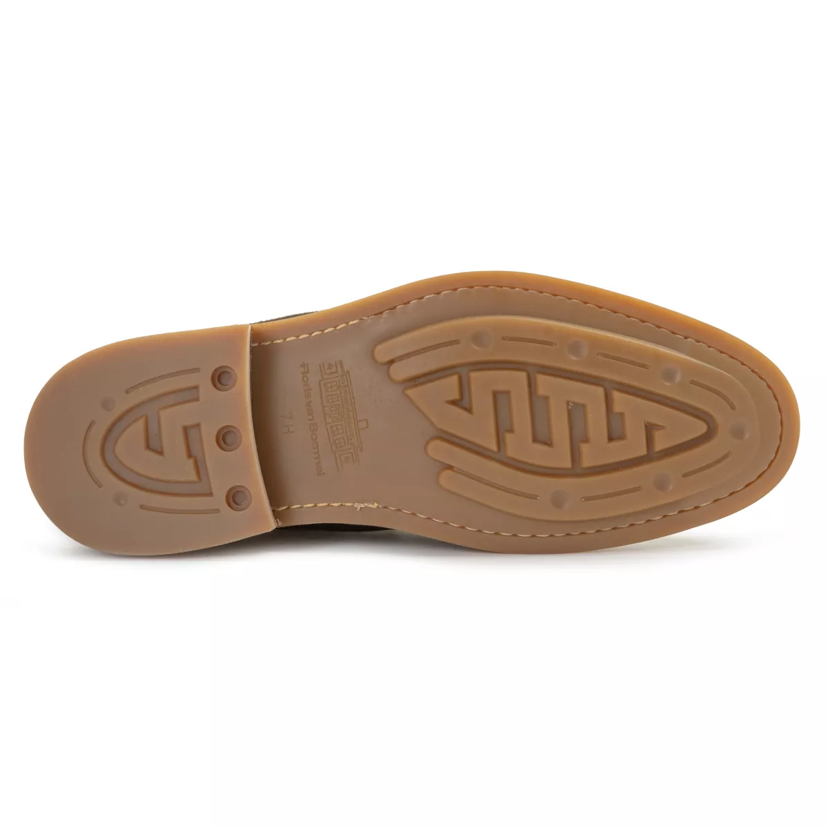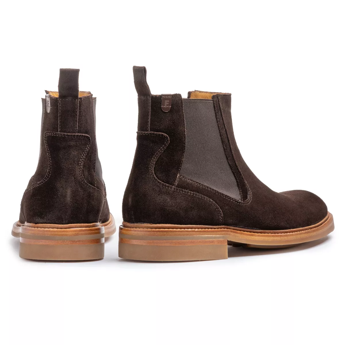 Deze casual chelsea is uitgevoerd met een soepel, karamel kleurig, rubberen onderwerk. De zool heeft een sportief antislip profiel en een karakteristieke, wat vollere, haktip. De binnenzool is afgewerkt met een uitneembaar voetbed dat vervangen kan worden door een eigen voetbed of steunzool. De voering is gemaakt van eerste klas kalfsleer. Bij de enkel is een klein lederen labeltje aangebracht met daarop een logo in de vorm van de letter F.