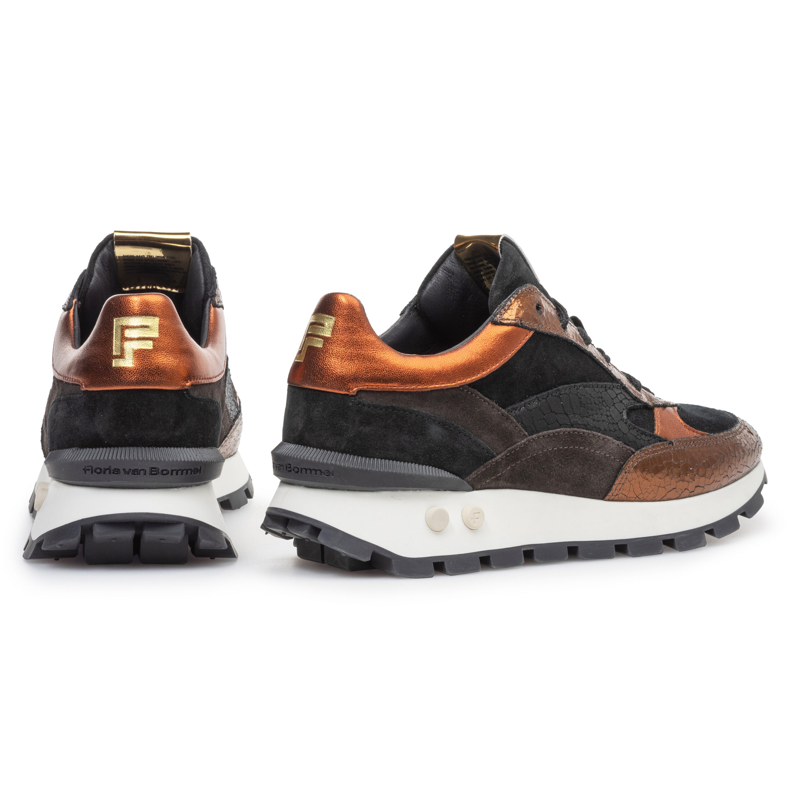 Deze sportieve runner is uitgevoerd met een markante zool. Het loopvlak bestaat uit stevige blokjes die goed zichtbaar zijn vanaf de zijkant. Op de zijkant van de zool zijn 2 ronde plugs aangebracht en bij de hiel is een robuuste stabilizer op de zool gemonteerd. Op de lekkere zachte tong is een label gestikt met op de voorkant een FvB logo en op de achterkant een levensinzicht van Floris om tot de kern van het leven door te dringen. In zijn totaliteit is dit een lekkere vlotte trendy sneaker waar je uren aan een stuk op kunt lopen. Deze sneaker is uitgevoerd in een rijke materialenmix van bruintinten.