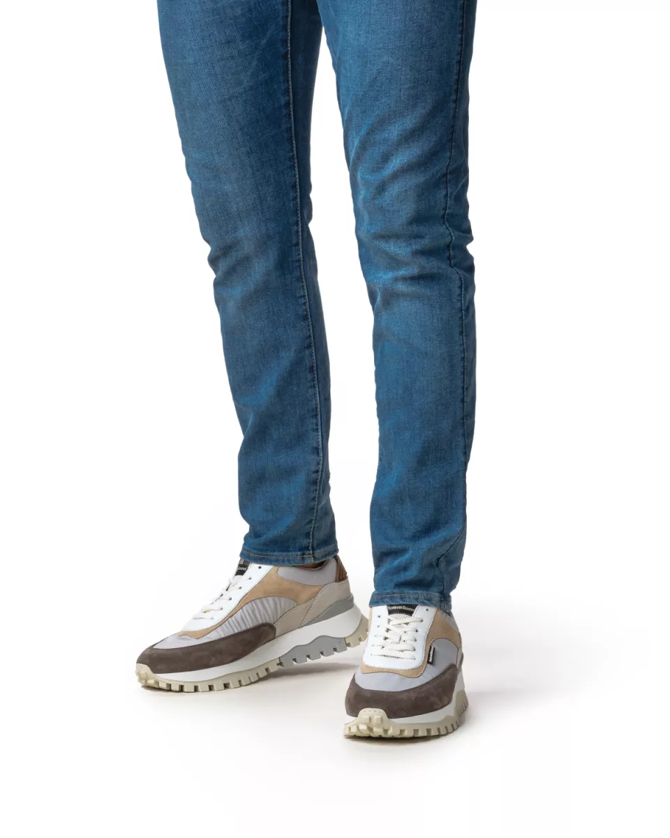 Deze sneaker is uitgevoerd met een karakteristieke zool met sportief blokjes reliëf. Dit reliëf komt ook terug in het rubberen label op de tong. De sneaker is voorzien van kwalitatief hoogwaardige lederen voering en een comfortabel uitneembaar voetbed. Dit voetbed is eventueel te vervangen voor een eigen voetbed of steunzool. Deze uitvoering bestaat uit een rijke mix van materialen. Verschillende grijstinten smelten samen tot een stijlvol geheel.