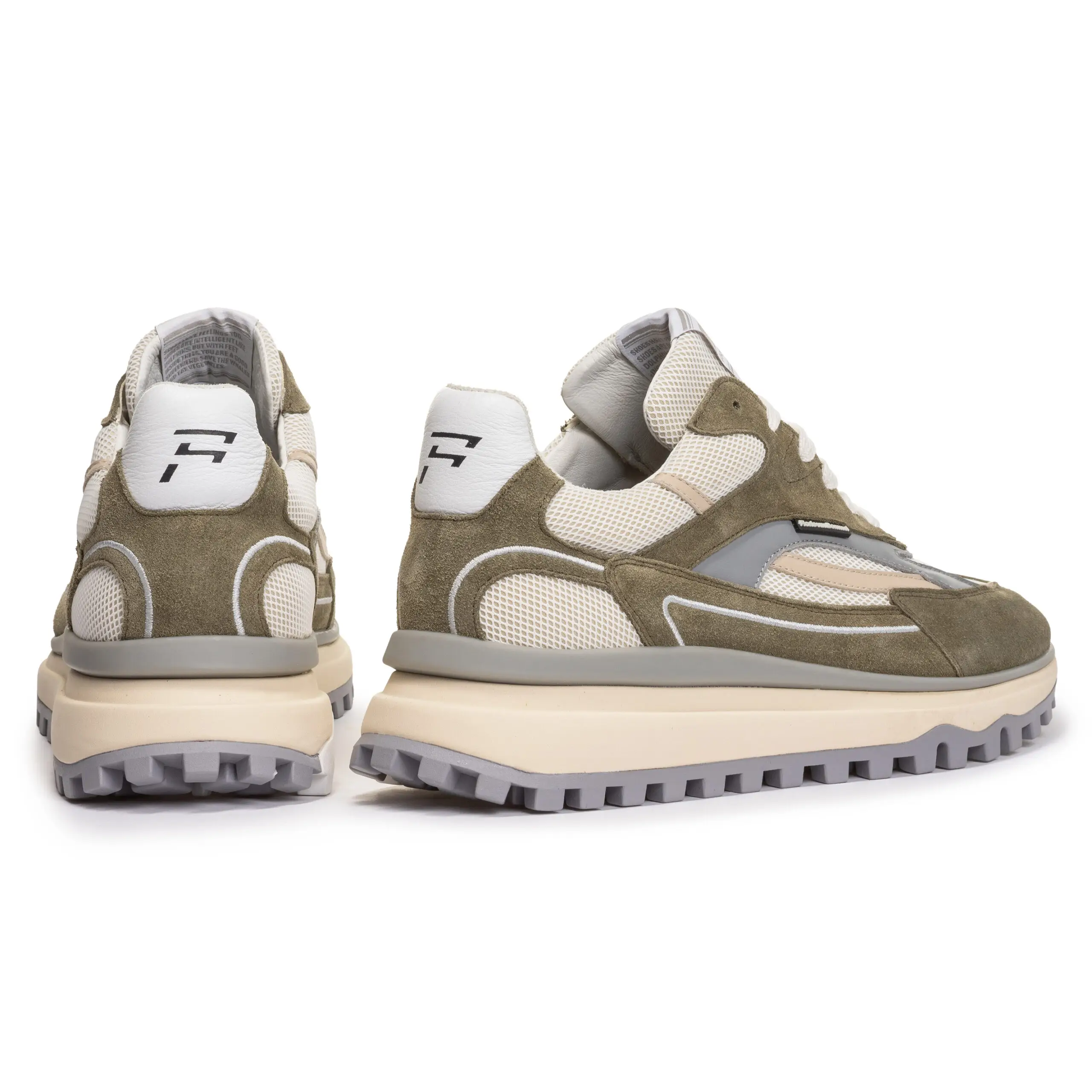 De Gripper 02.07 is dé nieuwe eyecatcher in de collectie van Floris van Bommel. Deze stoere heren sneaker combineert verschillende materialen en kleuren zoals groen, grijs, bruin en wit tot een opvallend geheel. Elk detail is zorgvuldig ontworpen voor een unieke, modieuze uitstraling.