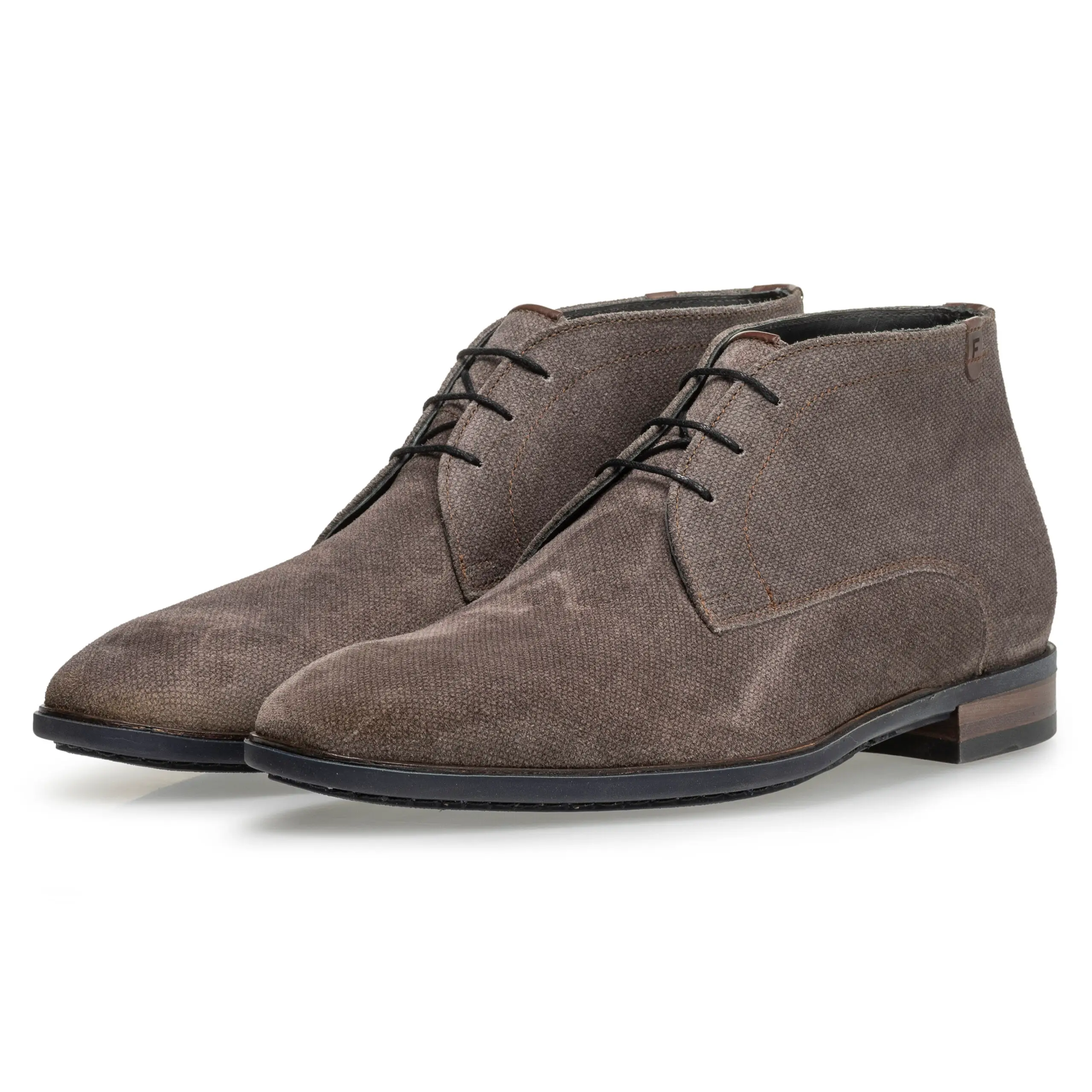 Deze dressed boot heeft als onderwerk een zool van soepel TPU. Langs de omtrek van de voorvoet en het geleng is in de zool een dun strookje leer ingelegd. Deze opstaande lederen strook vormt op elegante wijze de verbinding tussen zool en bovenwerk. Als voering is hoogwaardig, soepel en zacht kalfsleer gebruikt. De boot is voorzien van een comfortabel uitneembaar voetbed. Deze variant is uitgevoerd in taupe suède dat voorzien is van een genuanceerd geometrisch printje. Het suede heeft in het looivat een extra behandeling met olieën ondergaan voor een verfijnd, licht vettig handgevoel. Artikelnummer SFM-50121-34-01 Kleur Taupe Materiaal Geprint leer Voering Kalfsleer Zooltype Donkerblauwe rubberen zool Leest & wijdte 154 H Maakwijze BLAKE Uitneembaar voetbed Ja