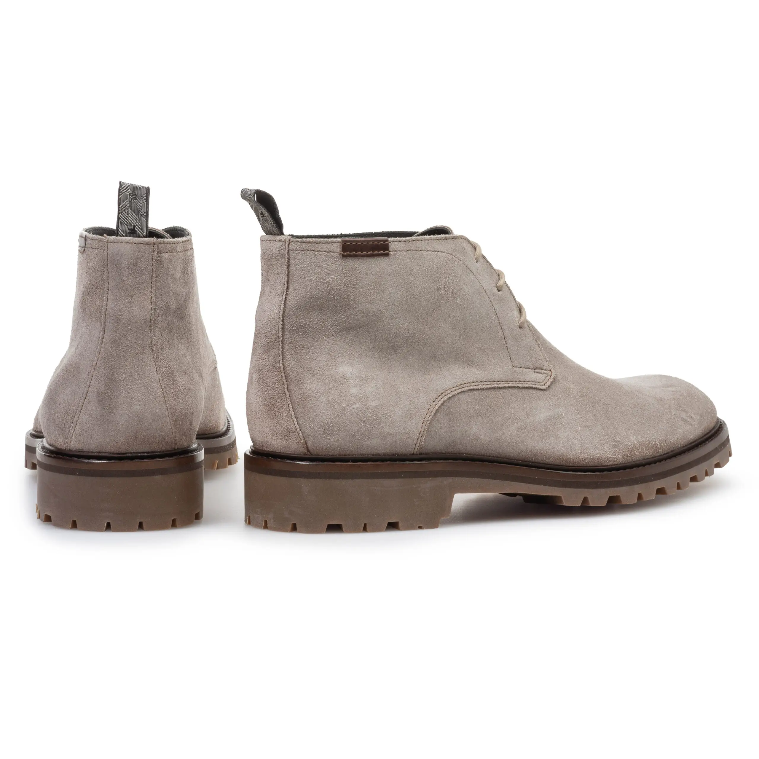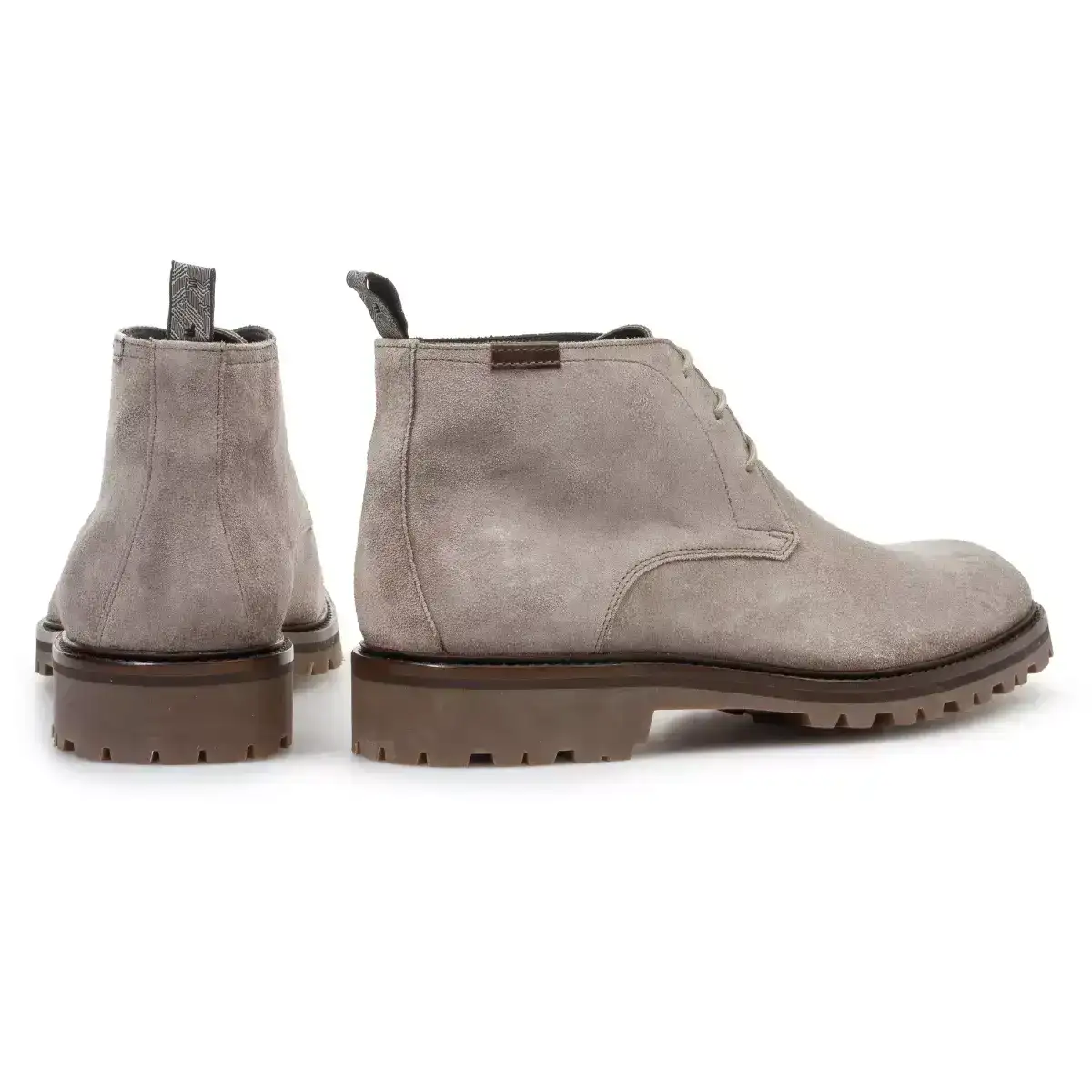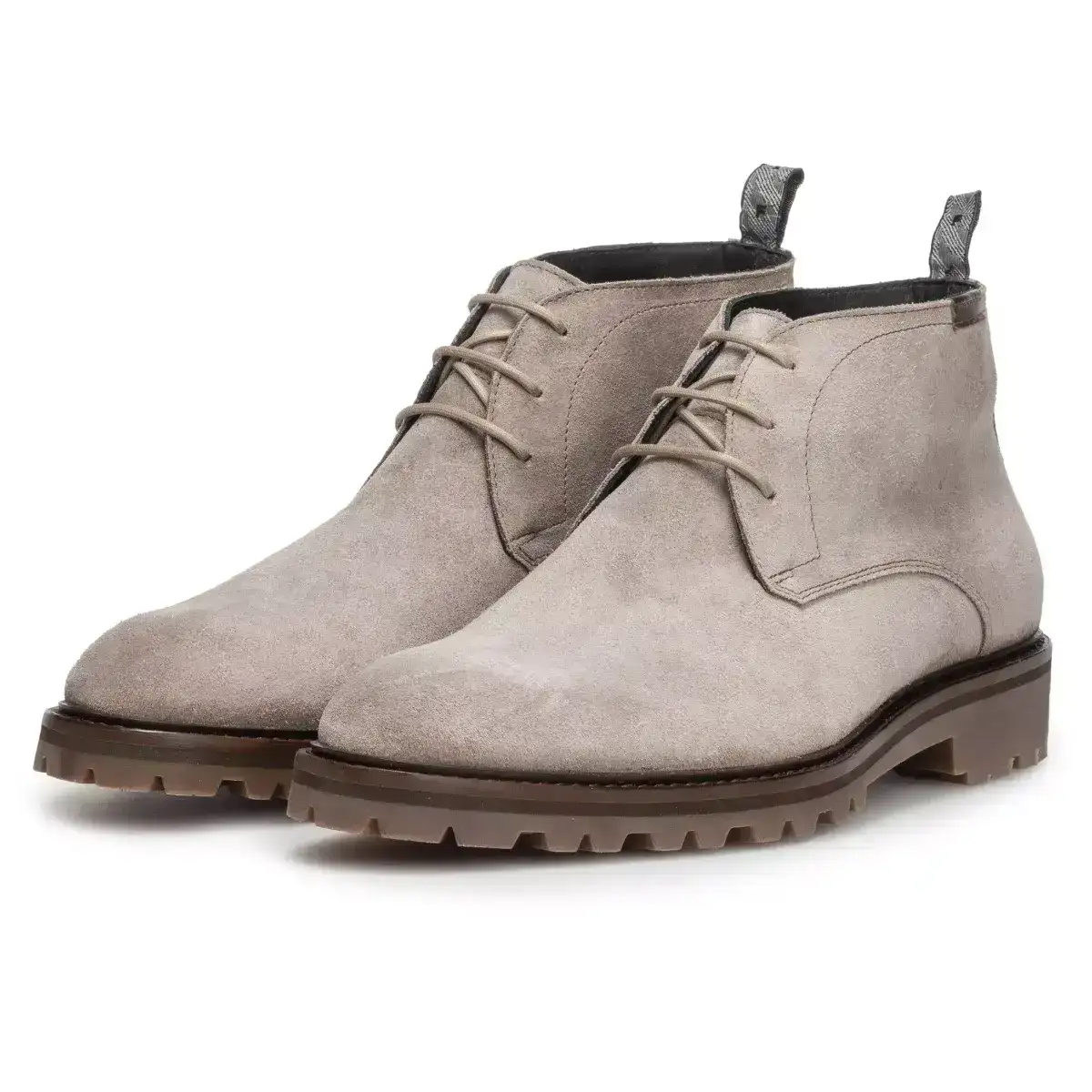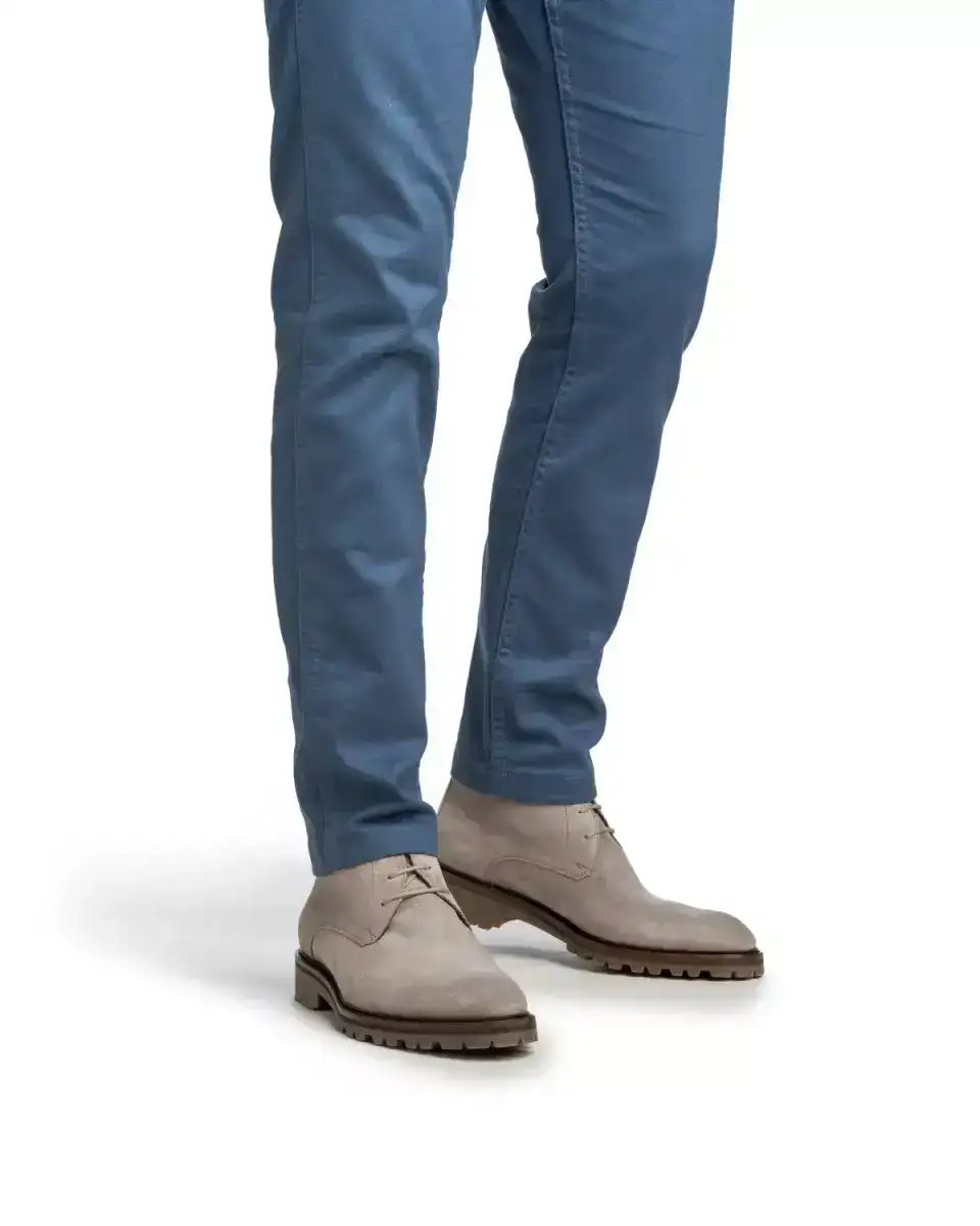 Deze tijdloze winterse veterboot is uitgevoerd in lichtbruin suède. De profielzool is gemaakt van soepel rubber en is zowel binnen als buiten praktisch in het gebruik. De slanke ronde leest oogt jong klassiek aan de voet. Het interieur van de boot is uitgevoerd in kwalitatief hoogwaardig kalfsleer. Floris heeft op een druilerige middag het klassieke comando profiel van de loopzool voorzien van kleine doodles en schetsjes die als reliëf op het rubber aangebracht.