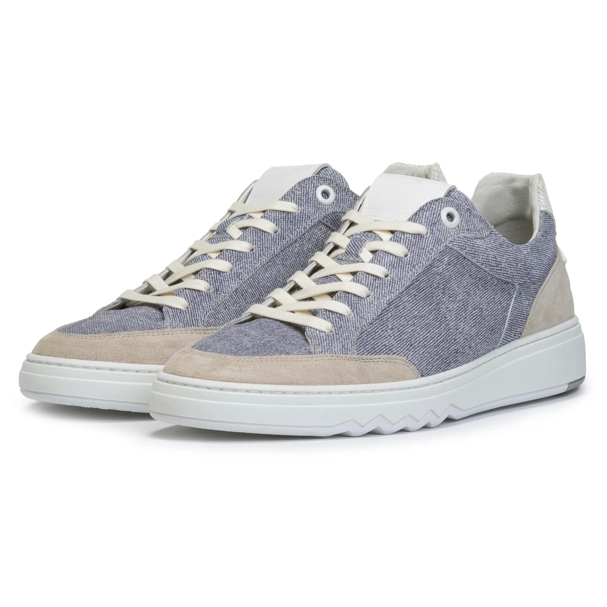 Dit is een nette sneaker op een sportieve kuipzool. Het loopvlak van de zool is voorzien van een karakteristiek zigzagpatroon dat ook aan de zijkant zichtbaar is. De lichtgewicht zool en de zorgvuldig ontworpen G1/2 leest staan garant voor optimaal draagcomfort. Het loopvlak is gemaakt van slijtvast TPU. De voering is gemaakt van hoogwaardige leer en het voetbed is uitneembaar. Deze variant is uitgevoerd in licht geolied, lichtgrijs met blauw geprint suède van een gespecialiseerde suedelooierij uit Santa Croce su’ll Arno, Pisa, Italië.