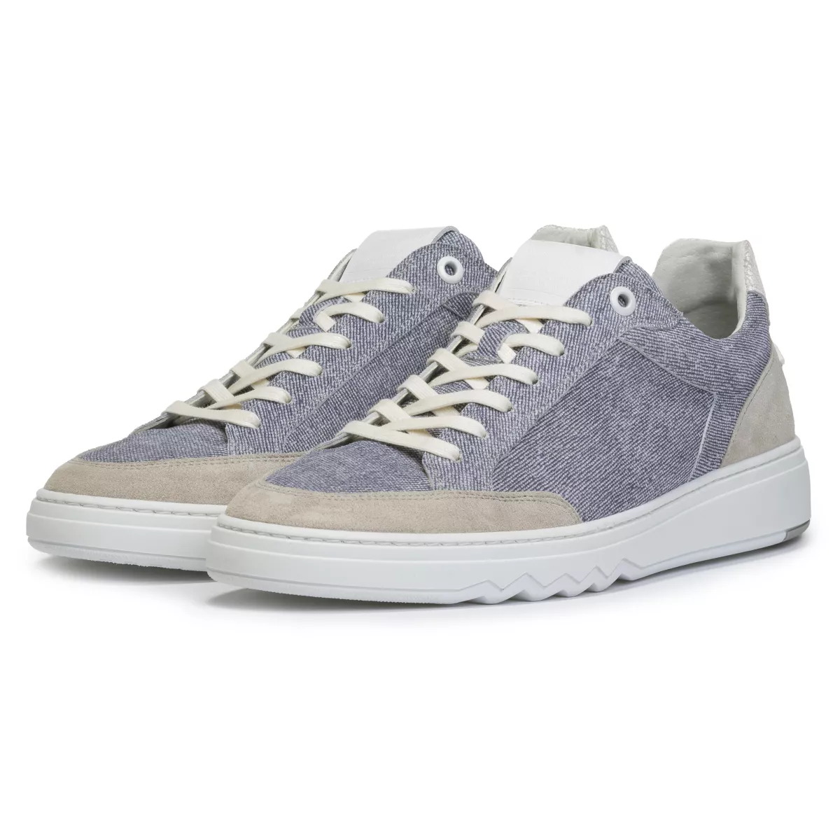 Dit is een nette sneaker op een sportieve kuipzool. Het loopvlak van de zool is voorzien van een karakteristiek zigzagpatroon dat ook aan de zijkant zichtbaar is. De lichtgewicht zool en de zorgvuldig ontworpen G1/2 leest staan garant voor optimaal draagcomfort. Het loopvlak is gemaakt van slijtvast TPU. De voering is gemaakt van hoogwaardige leer en het voetbed is uitneembaar. Deze variant is uitgevoerd in licht geolied, lichtgrijs met blauw geprint suède van een gespecialiseerde suedelooierij uit Santa Croce sull Arno, Pisa, Italië.