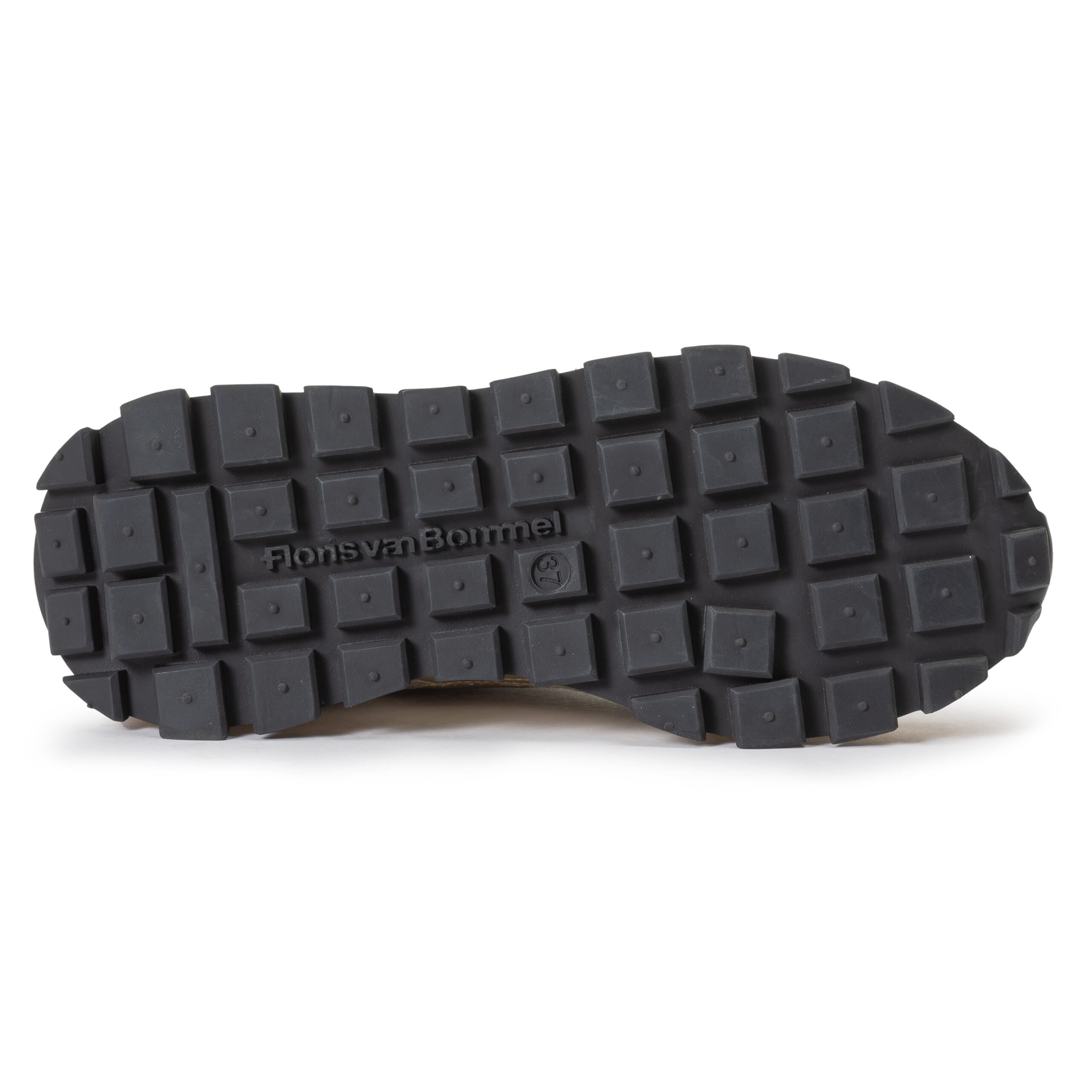 Deze sportieve runner is uitgevoerd met een markante zool. Het loopvlak bestaat uit stevige blokjes die goed zichtbaar zijn vanaf de zijkant. Op de zijkant van de zool zijn 2 ronde plugs aangebracht en bij de hiel is een robuuste stabilizer op de zool gemonteerd. Op de lekkere zachte tong is een label gestikt met op de voorkant een FvB logo en op de achterkant een levensinzicht van Floris om tot de kern van het leven door te dringen. In zijn totaliteit is dit een lekkere vlotte trendy sneaker waar je uren aan een stuk op kunt lopen. Deze sneaker is uitgevoerd in een rijke materialenmix van goudtinten.