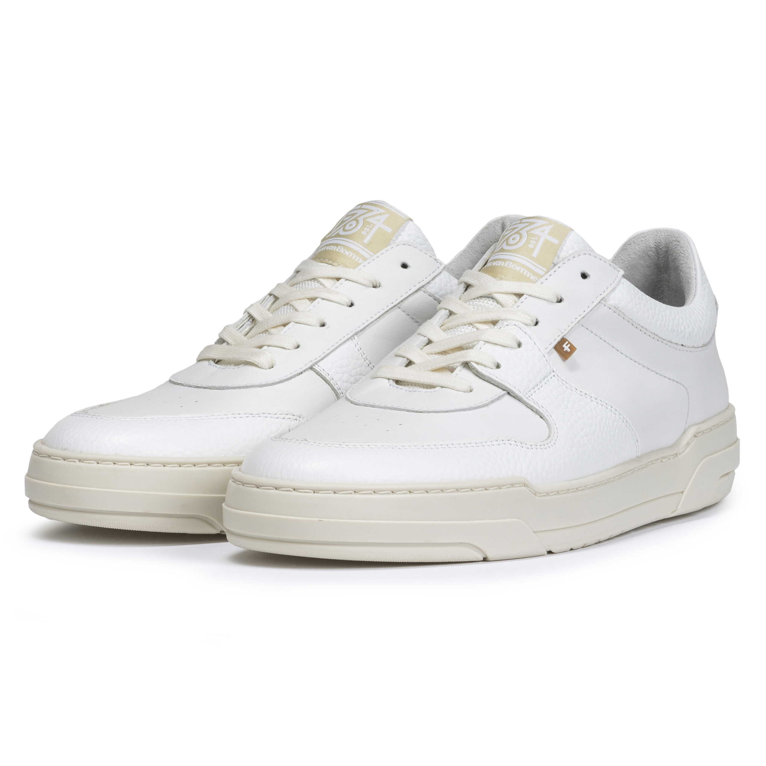 Deze De Dunker stijl is een modieuze doorvertaling van vintage basketballsneakers uit de jaren 80. De witte kuipzool is gemaakt van slijtvast TR-materiaal. Het Floris van Bommel logo is verwerkt op de zijkant van de schoen, op het vetertunneltje bovenin en op het tonglabel. De schoen is gevoerd met eerste klas voeringleer en is voorzien van een comfortabel uitneembaar voetbed. Indien nodig kan het voetbed vervangen worden voor een eigen steunzool of voetbed.