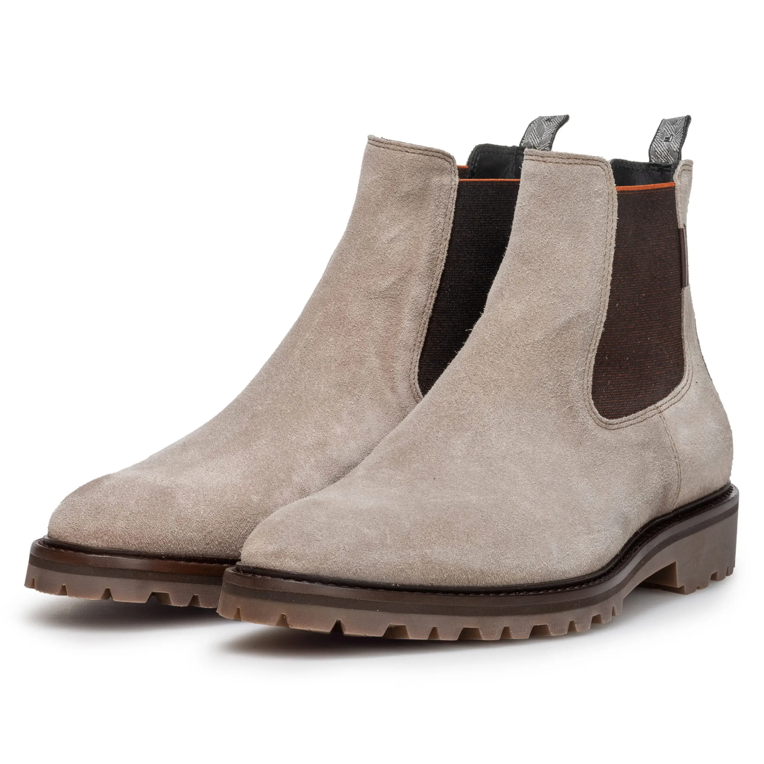 Deze tijdloze winterse chelsea boot is uitgevoerd in bruin geprint leer. De profielzool is gemaakt van soepel rubber en is zowel binnen als buiten praktisch in het gebruik. De slanke ronde leest oogt jong klassiek aan de voet. Het interieur van de boot is uitgevoerd in kwalitatief hoogwaardig kalfsleer. Floris heeft op een druilerige middag het klassieke comando profiel van de loopzool voorzien van kleine doodles en schetsjes die als reliëf op het rubber aangebracht zijn.