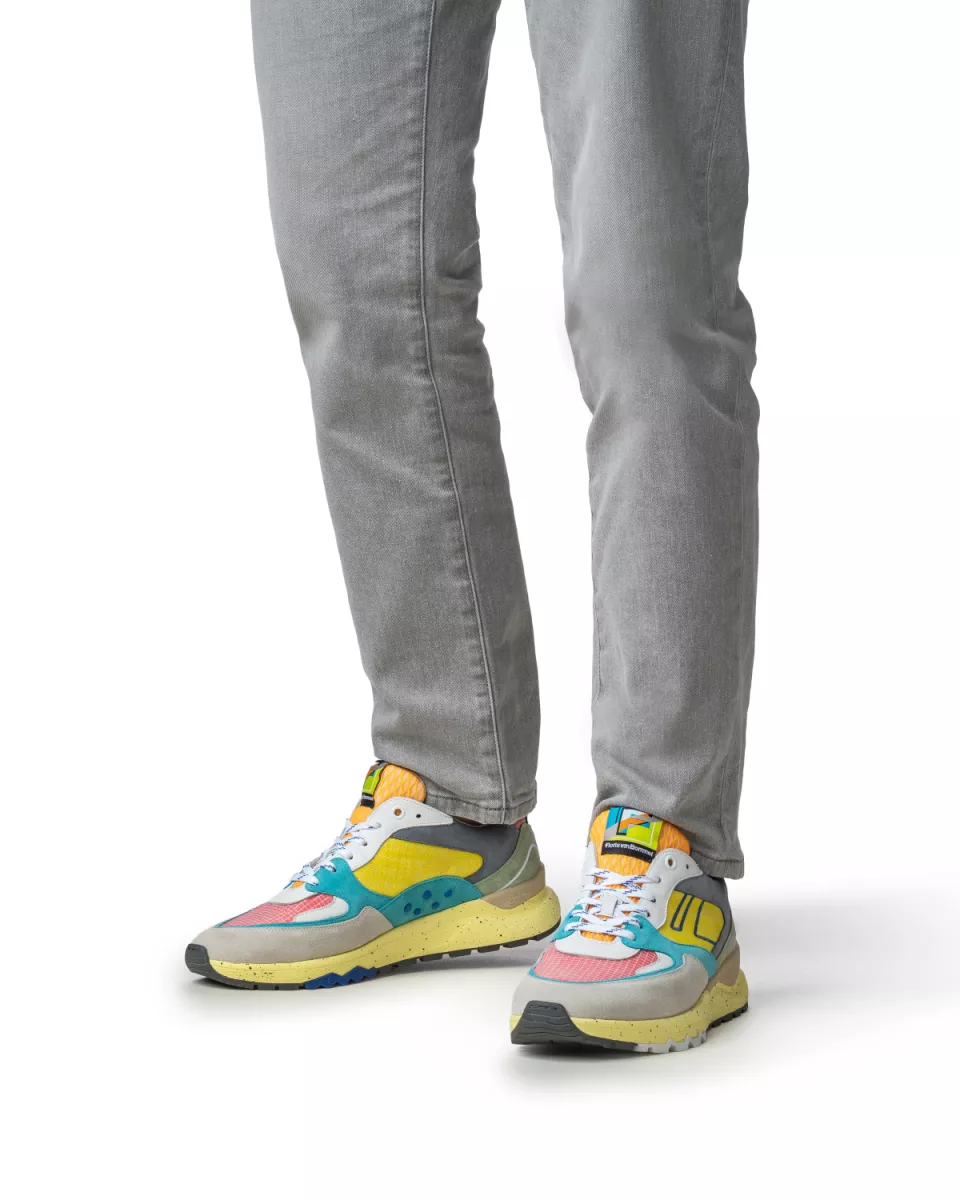 Deze De Treener sneaker is uitgevoerd met een soepele, lichtgewicht zool met een slijtvast rubber loopvlak. Bij de hiel is de zool voorzien van een sportieve stabilizer. Aan de zijkant van de schoen is ter herkenning een gekantelde F verwerkt. De sneaker is uitgevoerd in een rijke mix van verschillende kleuren leer-suede-textiel. De binnenkant van de sneaker is afgewerkt met een hoogwaardige lederen voering. Het uiterst comfortabele voetbed, dat ook met leer bekleed is, is uitneembaar en kan eventueel worden vervangen door een eigen voetbed of steunzool. Deze sneaker is gemaakt op een sportieve leest in een G1/2-wijdte, wat betekent dat ook een wat bredere voet er prima in past.