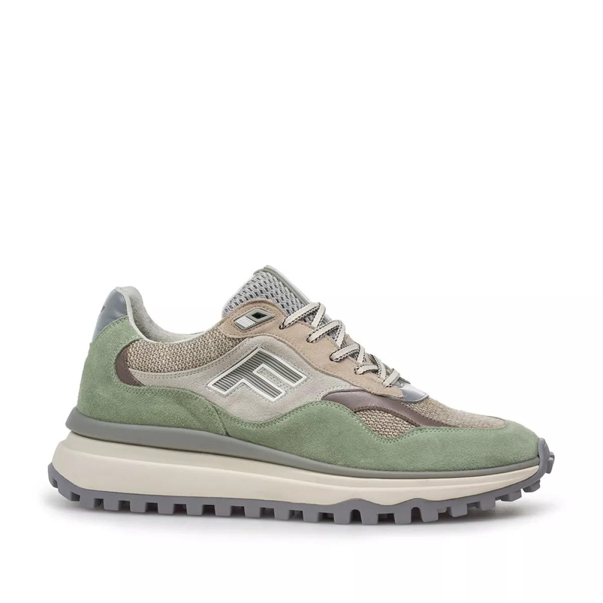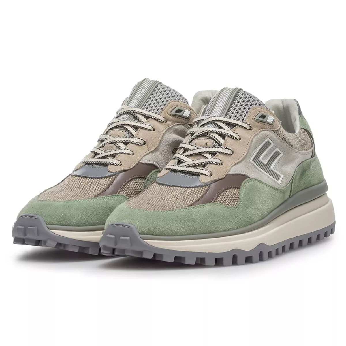 Dit is De Gripper, een sneaker op een robuuste runnerzool met bij de hiel een langgerekte stabilizer. De sneaker is uitgevoerd met kwalitatief hoogwaardige lederen voering. Het voetbed is volledig uitneembaar en kan, indien gewenst, vervangen worden door een eigen inlegzool of steunzool. Met een leest in wijdte G1/2 biedt deze sneaker een comfortabele en ruime pasvorm. Het bovenwerk is vervaardigd uit leer met nubuckleer. Op de zijkant en tong zijn rubberen labels aangebracht met het Floris van Bommel logo.