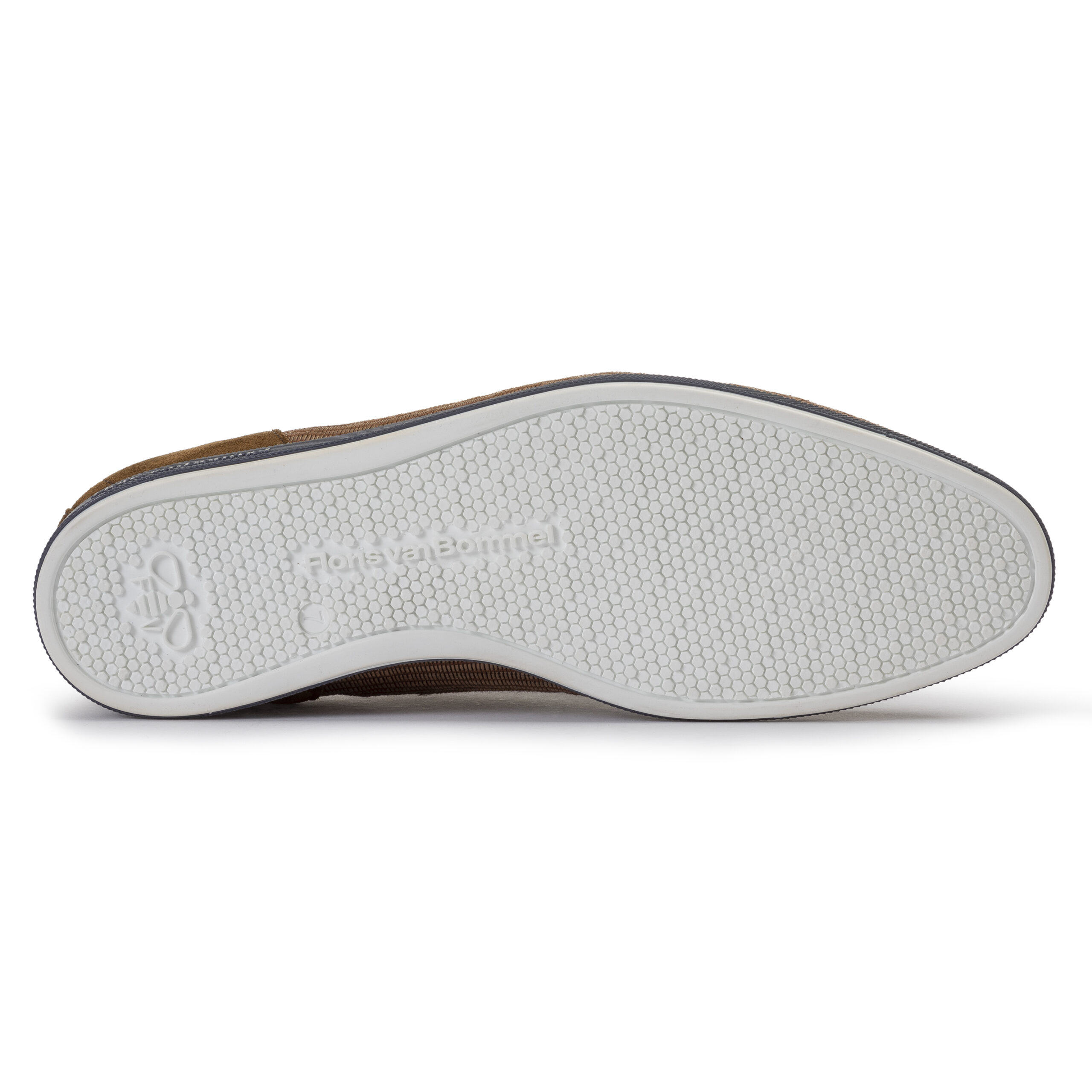 Een klassieker in onze collectie die elk voorjaar een mooie opfrisser krijgt. De soepele zool is gemaakt van slijtvast, blauw en wit TPU. Het loopvlak wordt gevormd door een antislip hexagon motief. Onder op de hak staat een ‘FV Bee’ logo’tje. Dit is een klein beeld/woordgrapje van Floris omdat de hexagonvormpjes op honingraadjes lijken. Op de zijkant van de schoen is een lederen labeltje bevestigd met daarop een ‘F’ logootje. De schoen is gevoerd met topkwaliteit kalfsleer en voorzien van uitneembaar voetbed dat de voet op comfortabele wijze ondersteunt. Het donkerblauwe suéde dat voorzien is van een genuanceerde reliëfdruk is gelooid door een suèdelooierij in de regio Toscane, Italië.