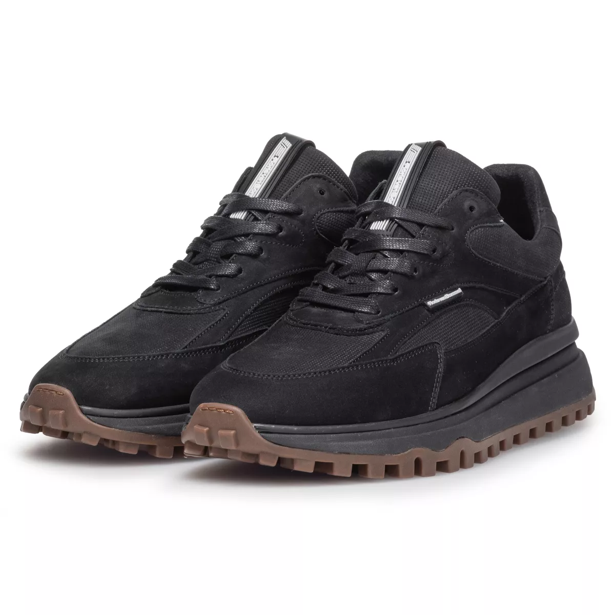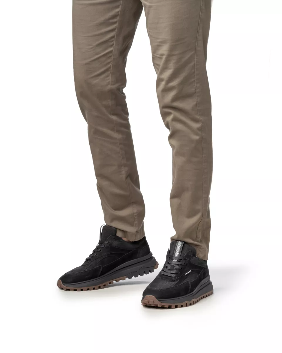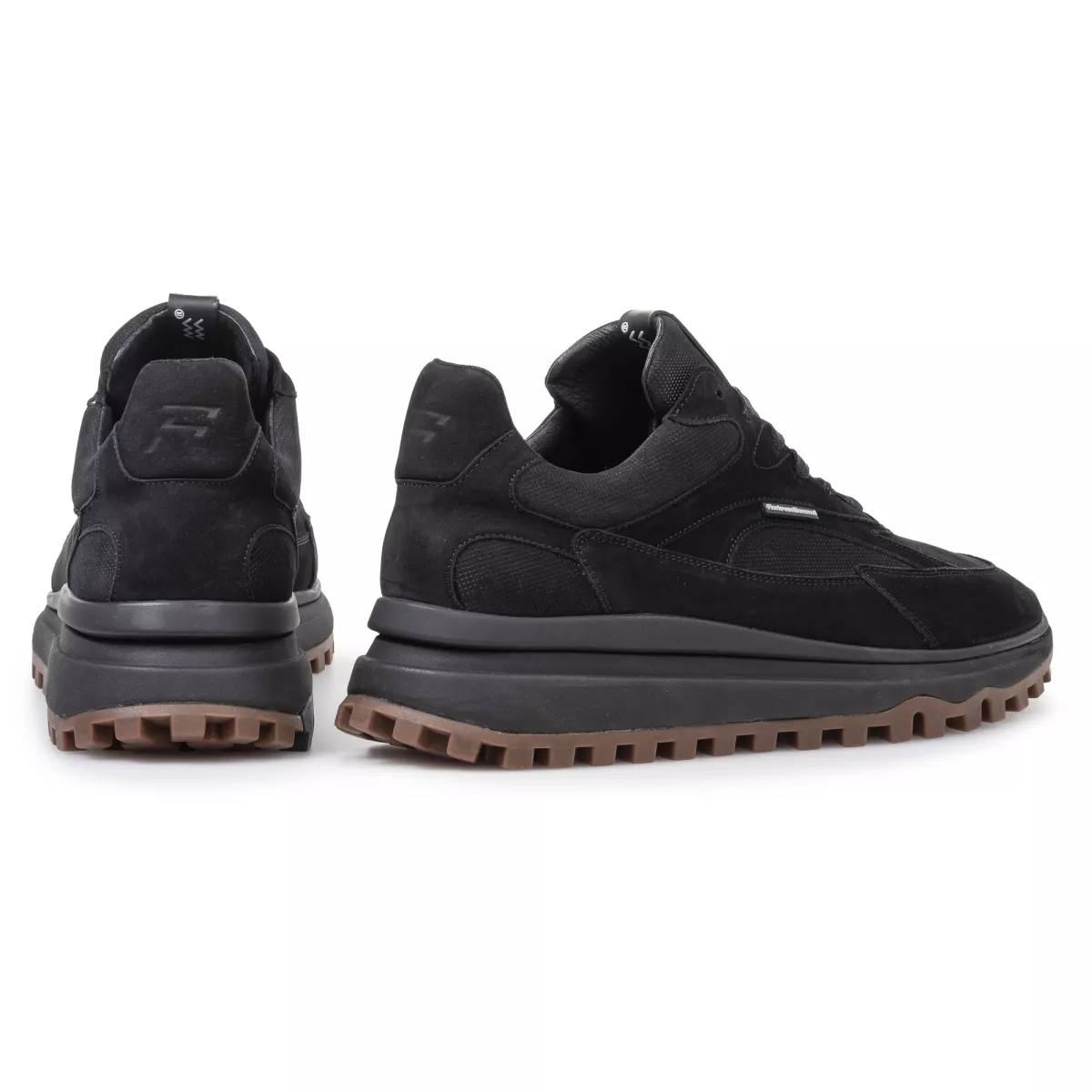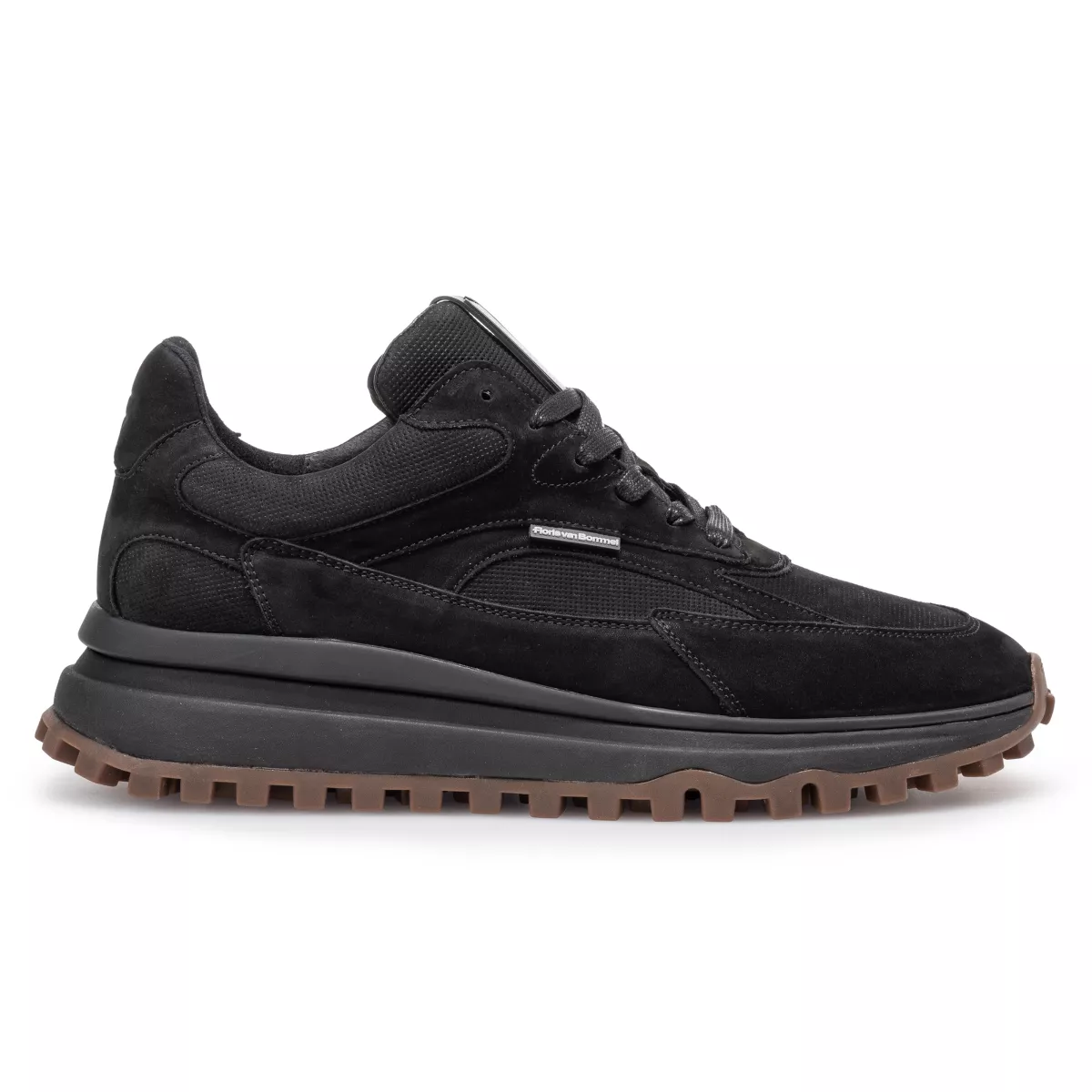 Dit is De Gripper, een sneaker op een robuuste runnerzool met bij de hiel een langgerekte stabilizer. De sneaker is uitgevoerd met kwalitatief hoogwaardige lederen voering. Het voetbed is volledig uitneembaar en kan, indien gewenst, vervangen worden door een eigen inlegzool of steunzool. Met een leest in wijdte G1/2 biedt deze sneaker een comfortabele en ruime pasvorm. Het bovenwerk is vervaardigd uit een mix van suède, leer en textiel. Op de zijkant en tong zijn rubberen labels aangebracht met het Floris van Bommel logo.