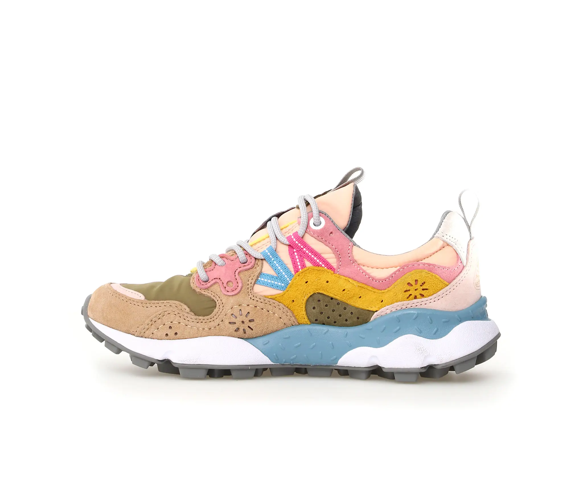 overlappende designelementen, stiknaden die zachte rondingen tekenen, trekkingveters en leren veterogen. Het resultaat? Een schoen met een comfortabele pasvorm, perfect voor wie op zoek is naar een onderscheidende stijl met wortels in de Japanse traditie.