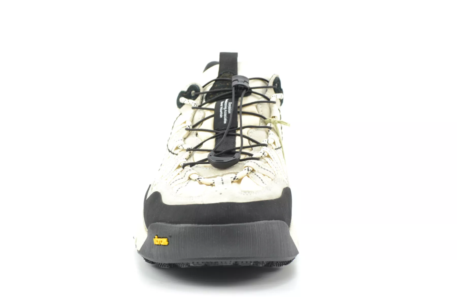 overlappende designelementen, stiknaden die zachte rondingen tekenen, trekkingveters en leren veterogen. Het resultaat? Een schoen met een comfortabele pasvorm, perfect voor wie op zoek is naar een onderscheidende stijl met wortels in de Japanse traditie.