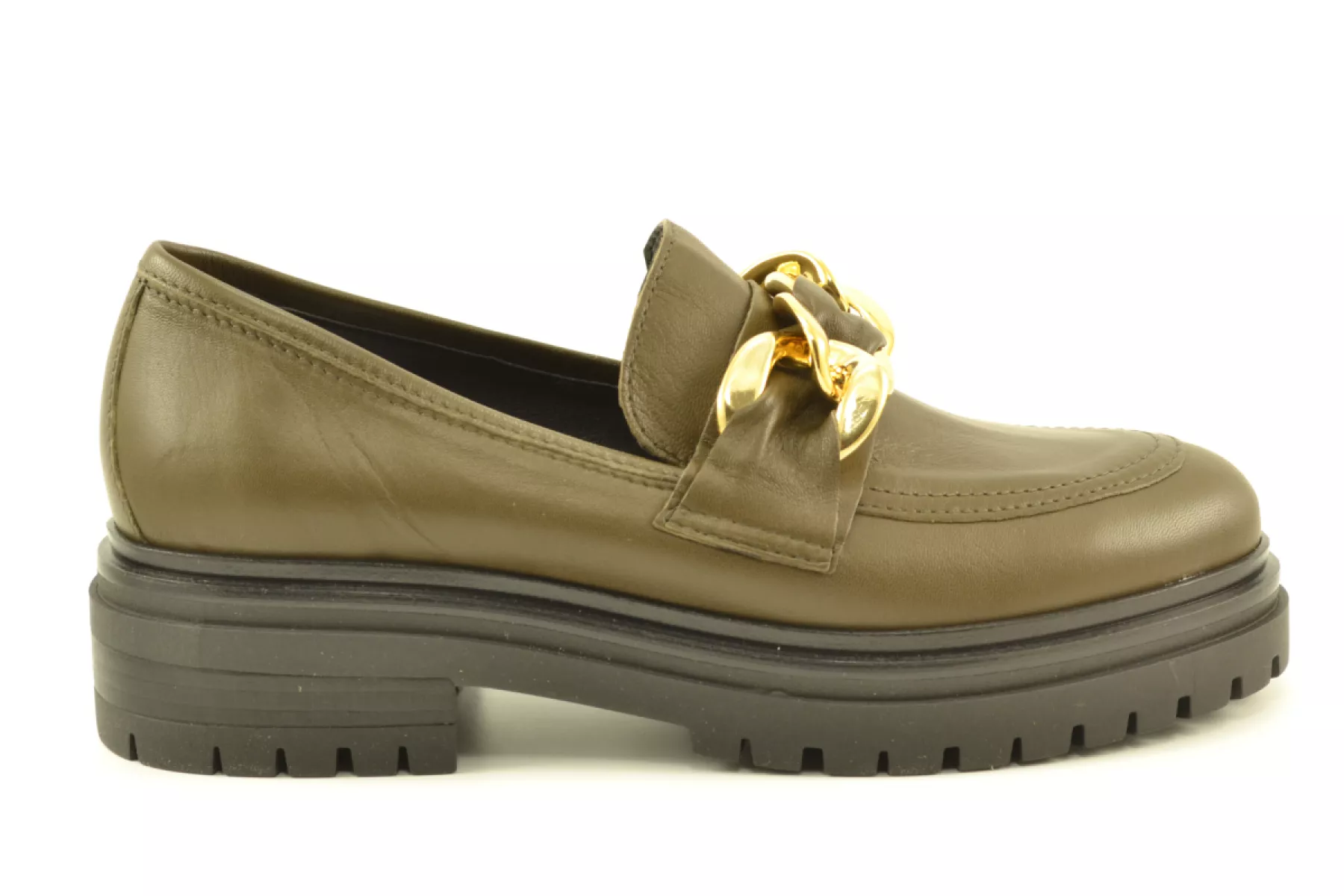 details: dat de mode weer vrouwelijker wordt bewijzen deze mooie instappers van het Italiaanse merk Gianluca Pisati. Stoer maar toch vrouwelijk dankzij het goudkleurige detail op de wreef en de mooi afgewerkte leest.